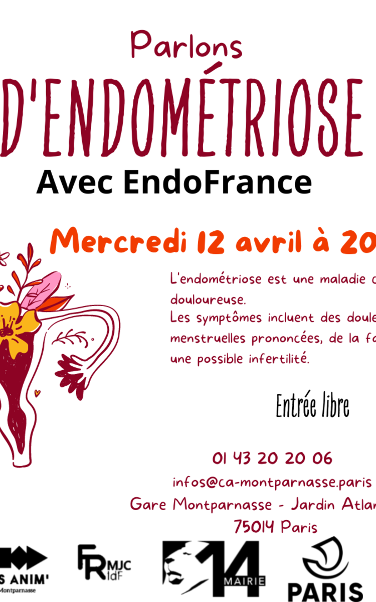 Pour parler de tout cela et plus encore, Endofrance, association française de lutte contre l'endométriose, sera présente pour une conférence le mercredi 12 avril à 20 h 30 au Centre Paris Anim' Montparnasse.
