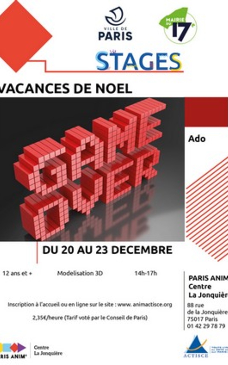 Le centre Paris Anim' La Jonquiere te propose un stage modélisation 3D où tu pourras créer ton propre personnage pour un jeu vidéo