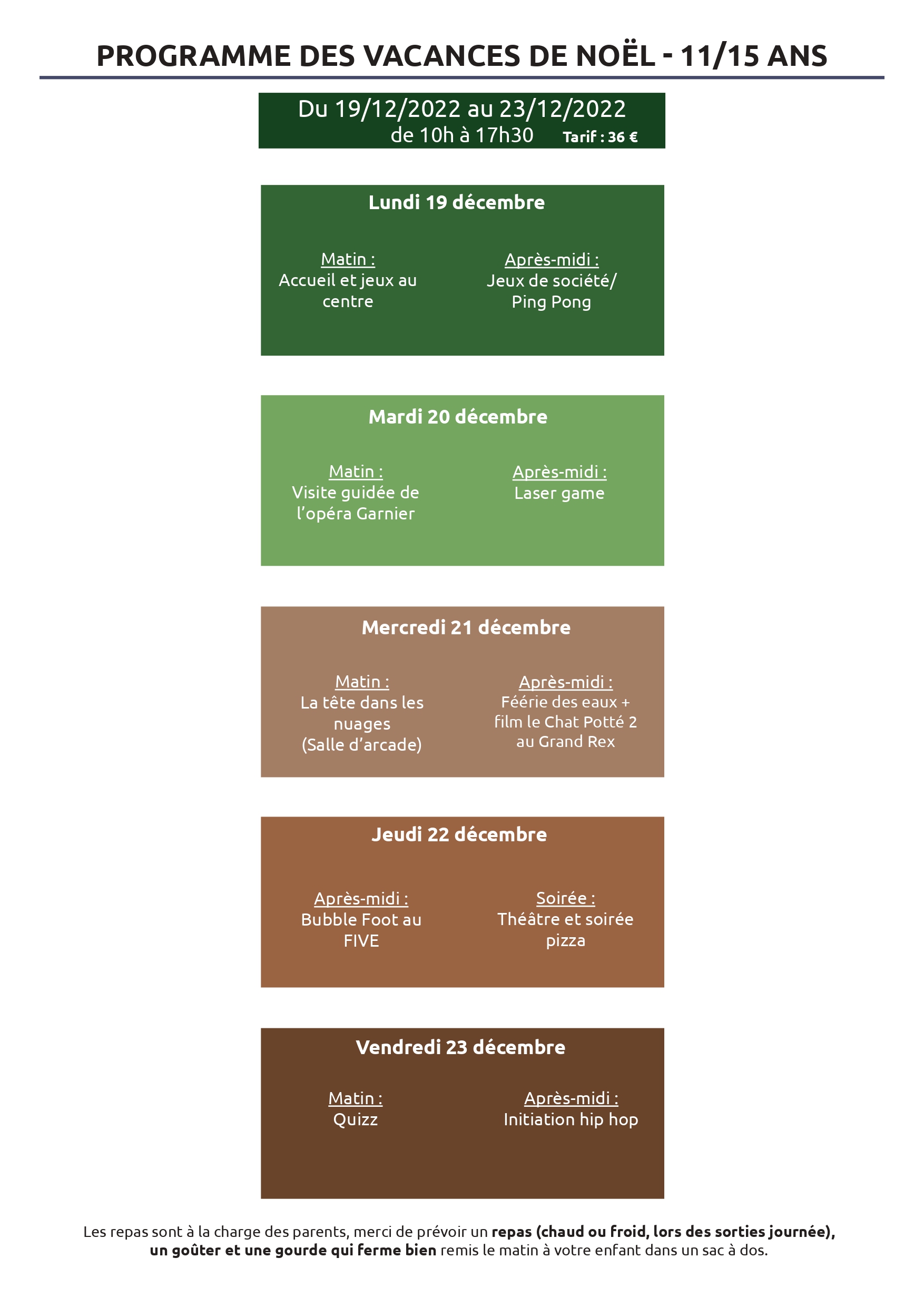 Du lundi 19 au vendredi 23 décembre 2022