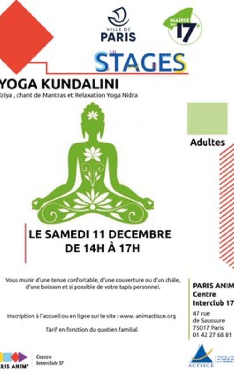 Le stage de yoga Kundalini vous permettra de travailler sur les différents plans de l’être à partir de séries utilisant le souffle, le rythme, des postures dynamiques ou statiques, le son, la relaxation et la méditation.