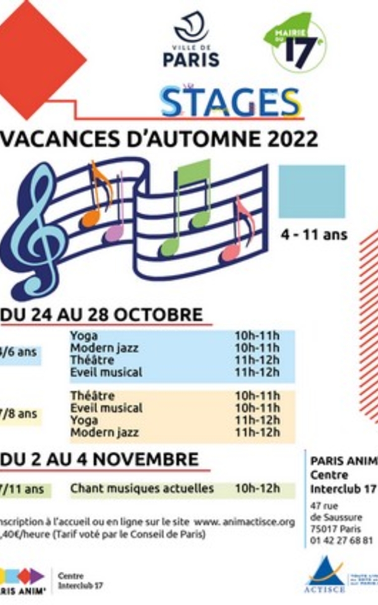 Stages enfants durant les vacances d'automne