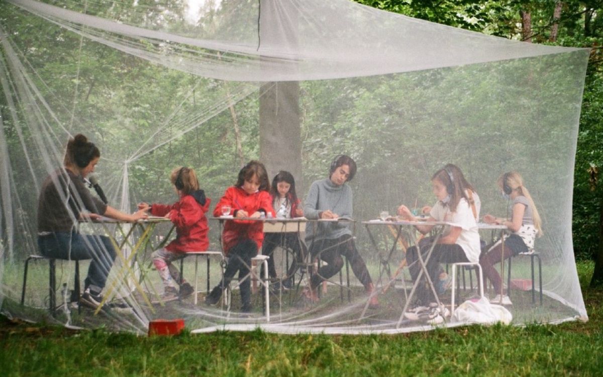 Une performance tout public dédiée à entraîner une sensibilité auditive au contact du verger, cette miniature du monde, traversée de paroles et de voix. Les poèmes passent de bouche en oreille en toute intimité, dans une installation qui fait événement, invitant les participant·es à se mettre en mouvement, à composer à leur tour sur la page, entre dessins et textes, laissant libre cours à ce qu'une main peut dire. Nous cherchons à faire circuler la poésie de cette manière parce que nous voulons qu'elle puisse se proposer comme expérience, comme enquête susceptible d'embarquer quiconque dans son élan.