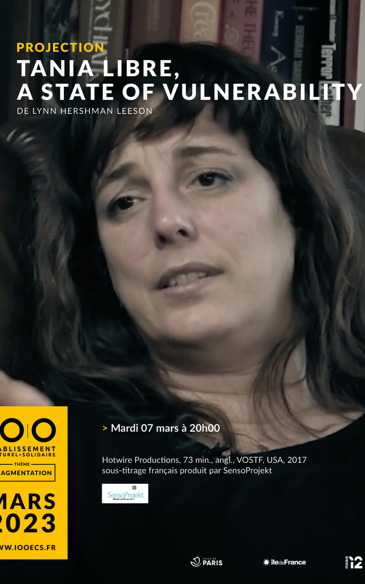 Ce film nous la présente dans ses échanges avec le Docteur et psychanalyste Frank Ochberg, à qui elle livre son trauma et énonce sa mémoire des faits car elle sortait de prison à La Havane, ayant souvent été interpelée par les pouvoirs publics suite à ses performances – dont la célèbre « Moi aussi j’exige » prévue sur la Place de la Révolution, et interdite. Cette conversation ponctuée de documents quant à son œuvre délivre la vulnérabilité de l’artiste, autant que le fil rouge de son raisonnement en lutte contre la censure, en faveur de la dissidence et au bénéfice de l’art qui est un besoin social élémentaire ! Les premières paroles de ce documentaire d’artiste (prononcées par Tilda Swinton), citent le « Manifeste sur le droit des artistes » que Tania Bruguera rédige en 2012 à l’invitation de l’ONU.