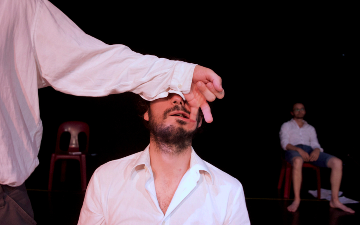 Le texte expose le parcours d’une personne sous le regard de trois personnages à l’allure de conférenciers. La parole se partage entre les trois acteurs représentant chacun un trait de caractère de l’homme raconté.