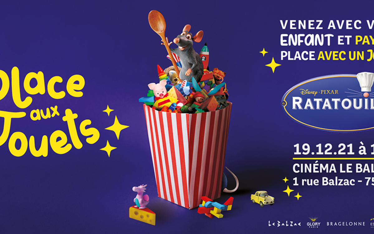 #Ratatouille en famille. Chaque enfant pourra payer sa place avec un jouet en bon état. Les jouets récupérés seront redistribués aux associations partenaires de l’opération. Plus que jamais, la solidarité, l’entraide et le partage sont les ingrédients essentiels pour que la magie de Noël opère dans les yeux de tous les enfants. Attention, les places sont limitées alors réservez vite votre entrée ici.