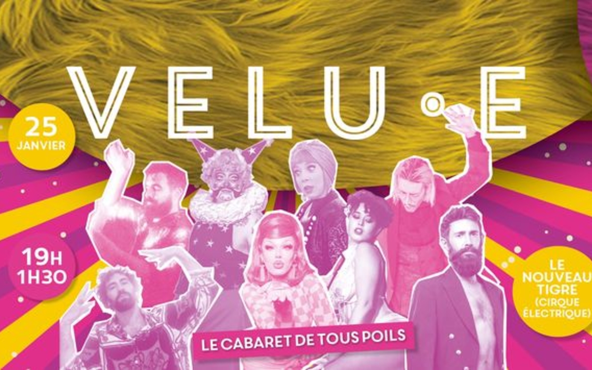 Velu.e c'est pour les noctambules de fin de journée, les amoureu.x.es des arts de nuit, les philanthropes de l’afterwork. Velu.e c’est à la fois un cabaret viscéral changeforme et détonnant, une soirée pour tou.te.s, une plateforme d'échange pour le cœur qui renoue avec l’essence même du cabaret Parisien, irrévérencieux et jubilatoire.