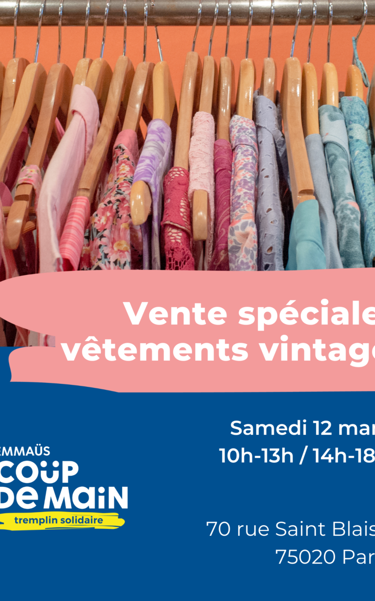 Rendez-vous le samedi 12 mars à partir de 10h au 70, rue Saint-Blaise dans le 20ème arrondissement. Premiers arrivés, premiers servis ! Comme d'habitude quelques 500 pièces environ sont mises en vente, à prix tout doux L'évenement parfait pour chiner écologique et économique!Aucune raison de se priverLes règles sanitaires restant inchangées, pensez à amener votre masque, ainsi que vos sacs réutilisables ! Du gel vous sera proposé à l'entrée du magasin.
