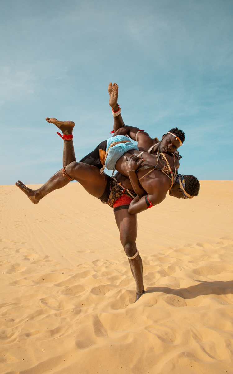 Cette exposition revisite la lutte sénégalaise par une série de photographies portant un regard intime sur cette pratique ancestrale. Le caractère mystique de la lutte se traduit par différents symboles telles que les actes de verser du lait sur le corps et de porter des objets appelés « gris-gris » pendant le combat. Ces derniers sont synonymes de performance et de succès au combat.