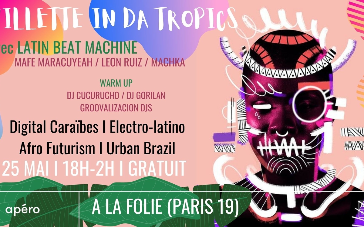 Villette in da Tropics est de retour et s'installe cet été dans le super spot de A LA FOLIE !! Premier voyage de la saison prévu le MERCREDI 25 MAI (veille jour férié!!) direction les sonorités électroniques et calientes des Caraïbes, le Brésil, l'Amérique Latine et l'Afrique pour transpirer jusqu'à l'aube avec #dancehall, #latinbass, #afroelectro et #bailefunk ! En guest le collectif LATIN BEAT MACHINE explorateurs des nouvelles sonorités de l'Amérique Latine avec un cocktail explosif d'avant-garde latino-américain !!