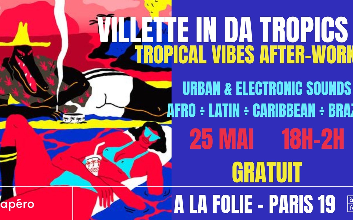 Cet été VILLETTE IN DA TROPICS revient dans le super spot de A LA FOLIE en mode after-work !! Voyage prévu le JEUDI 25 MAI direction les sonorités électroniques et calientes des Caraïbes, le Brésil, l'Amérique Latine et l'Afrique !