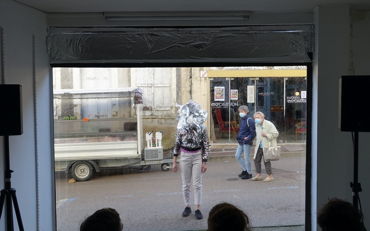 Par une performance visuelle et sonore de Anne-Julie Rollet et Anne-Laure Pigache, nous sommes invités à audio-regarder ce dehors où la poésie du réel s’exprime en discrets détails. Utilisant une vitrine comme écran de cinéma et ses passants comme figurants, Les Harmoniques du Néon décalent petit à petit ce quotidien pour nous en révéler ses habitudes et sa bizarrerie. En initiant un changement de temporalité qui s’extrait de celle du va-et-vient de la rue, cette étude anthropologique souligne les traces que laissent ces passants au dehors et en nous-même