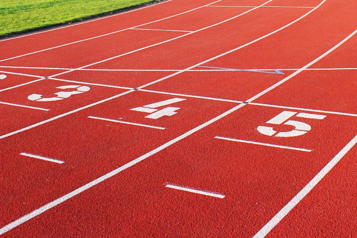 Piste circulaire éclairée de 400 m, 6 couloirs, 8 lignes droites.