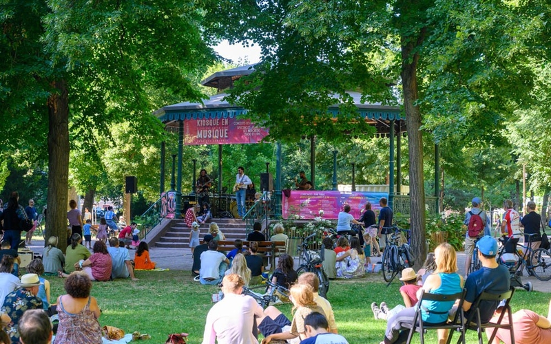 On y joue, on s'y retrouve, on s'y repose... au centre des grands immeubles, à deux pas du marché, tout près de l'entrée du métro. Il déploie ses féviers, peupliers blancs, savonniers, sophoras, arbres de Judée et autres micocouliers.