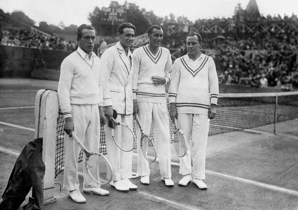 Le champion de tennis Jean Borotra (2e en partant de la gauche) lors de la finale de la Coupe Davis 1928, à Roland-Garros (16e).