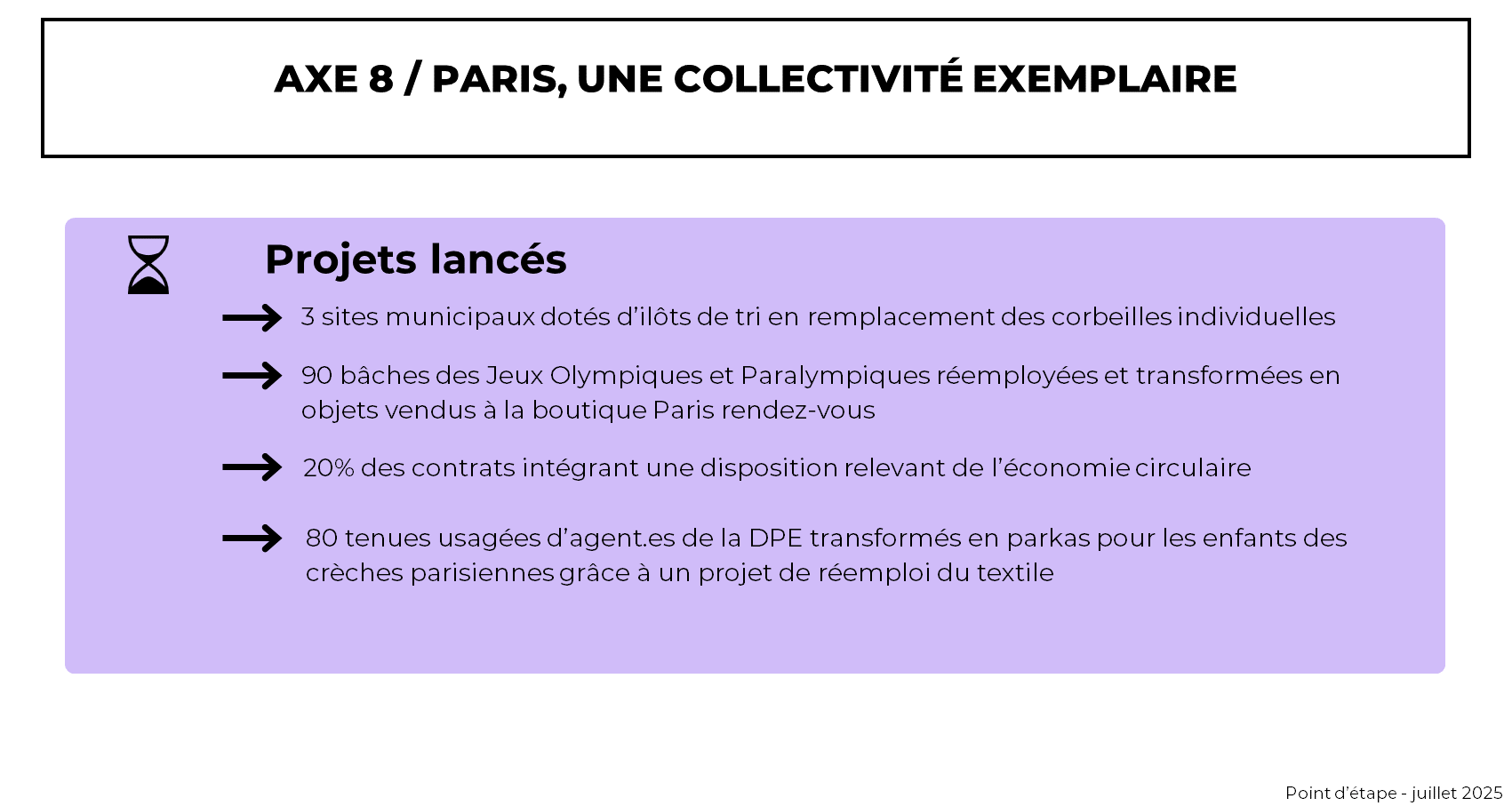 Etat d'avancement de la mise en œuvre de l'axe 8 en juillet 2025 :