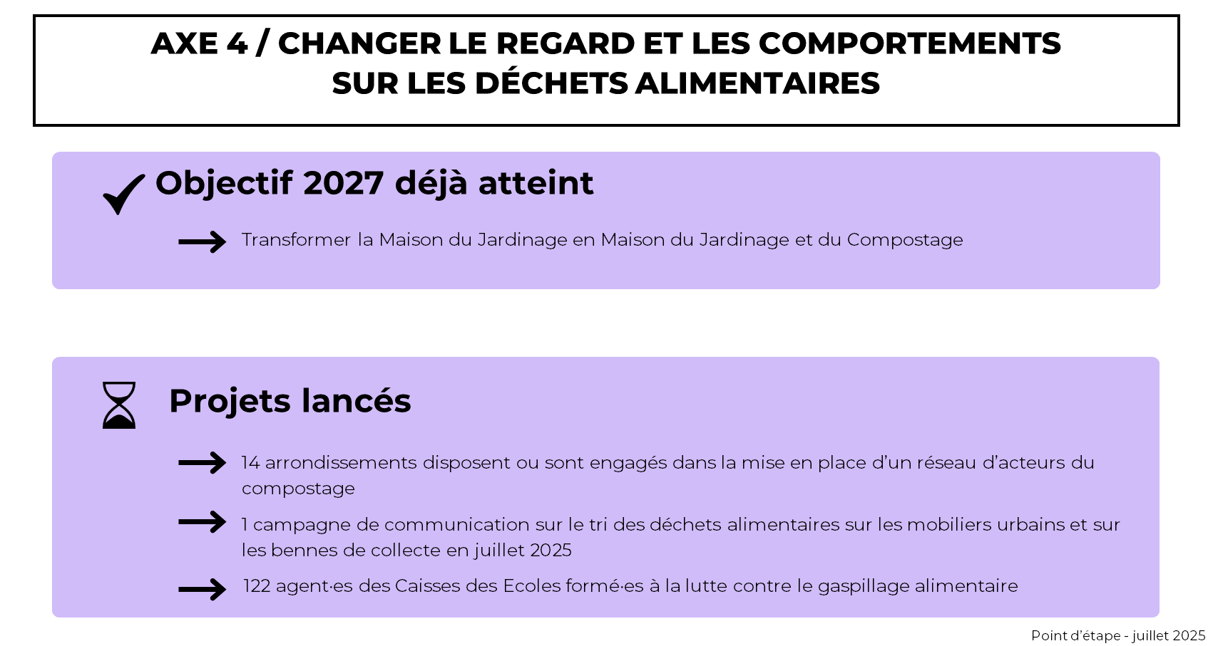 alimentaire sera intensifiée dans les cantines scolaires et sur les marchés, alors que 600 bornes de tri des déchets alimentaires ont été installées dans tous les arrondissements en 2024.