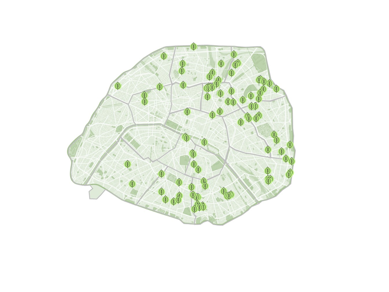 La carte des 92 rues et places végétalisées dans les arrondissements