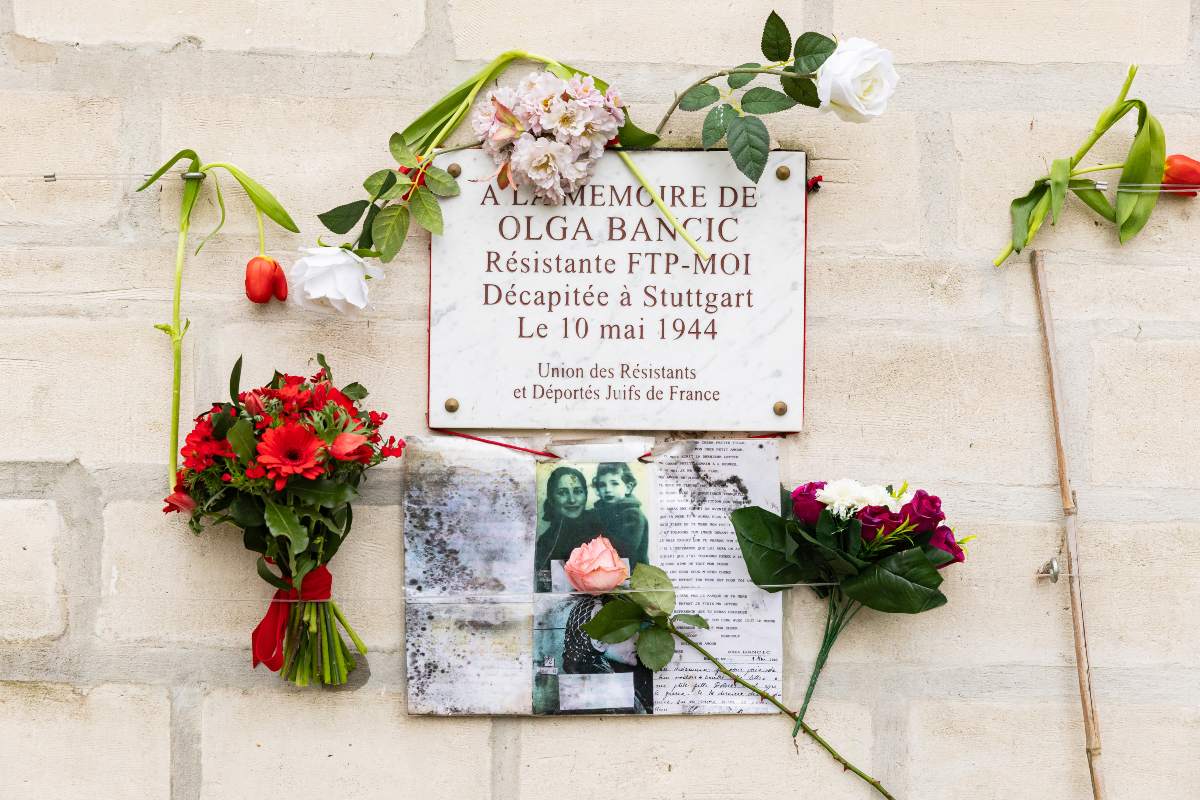À la mémoire d’Olga Bancic, dite Pierrette, résistante communiste juive roumaine et volontaire des FTP-MOI de la région parisienne, dans le cimetière d’Ivry-sur-Seine (Val-de-Marne).