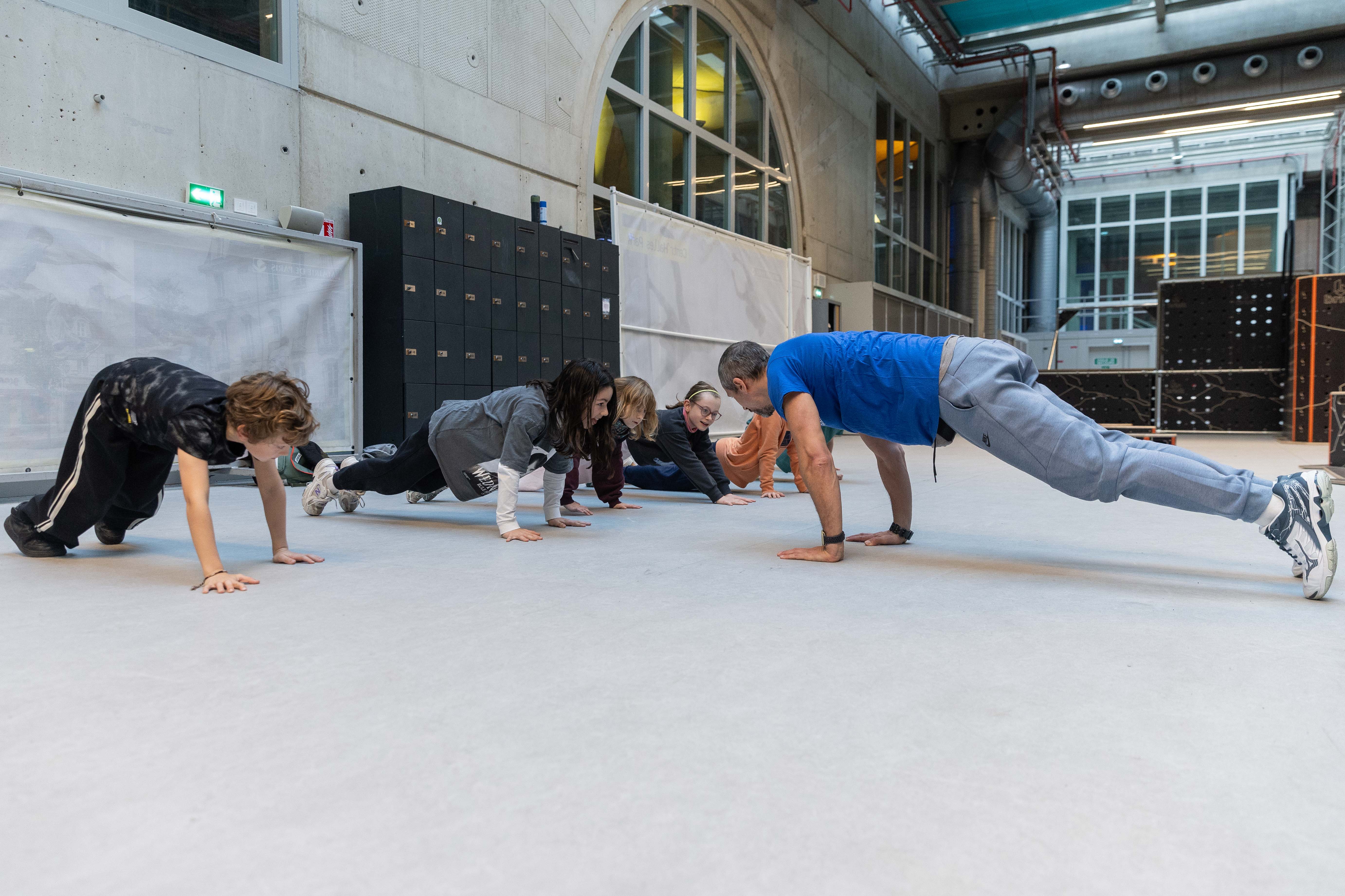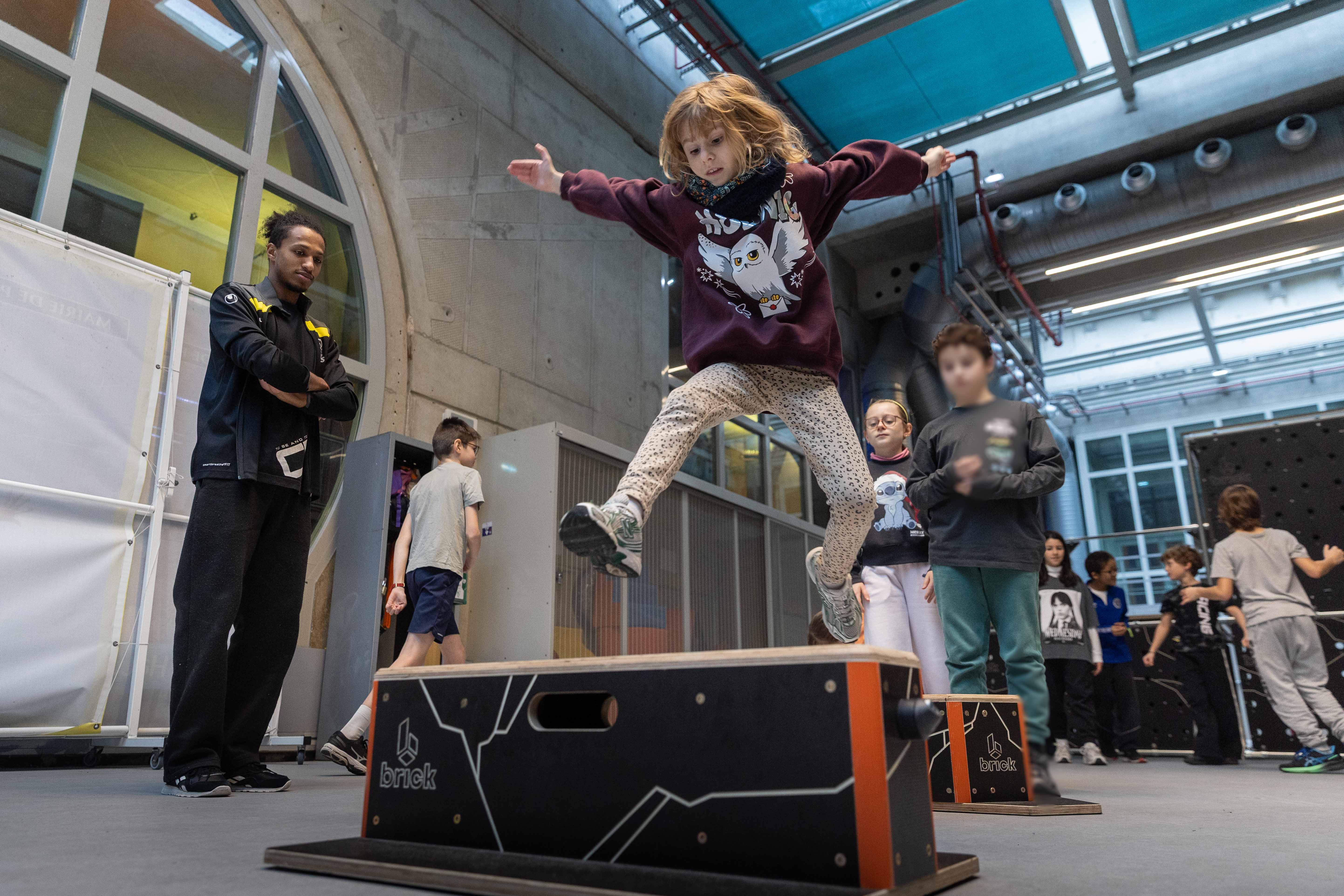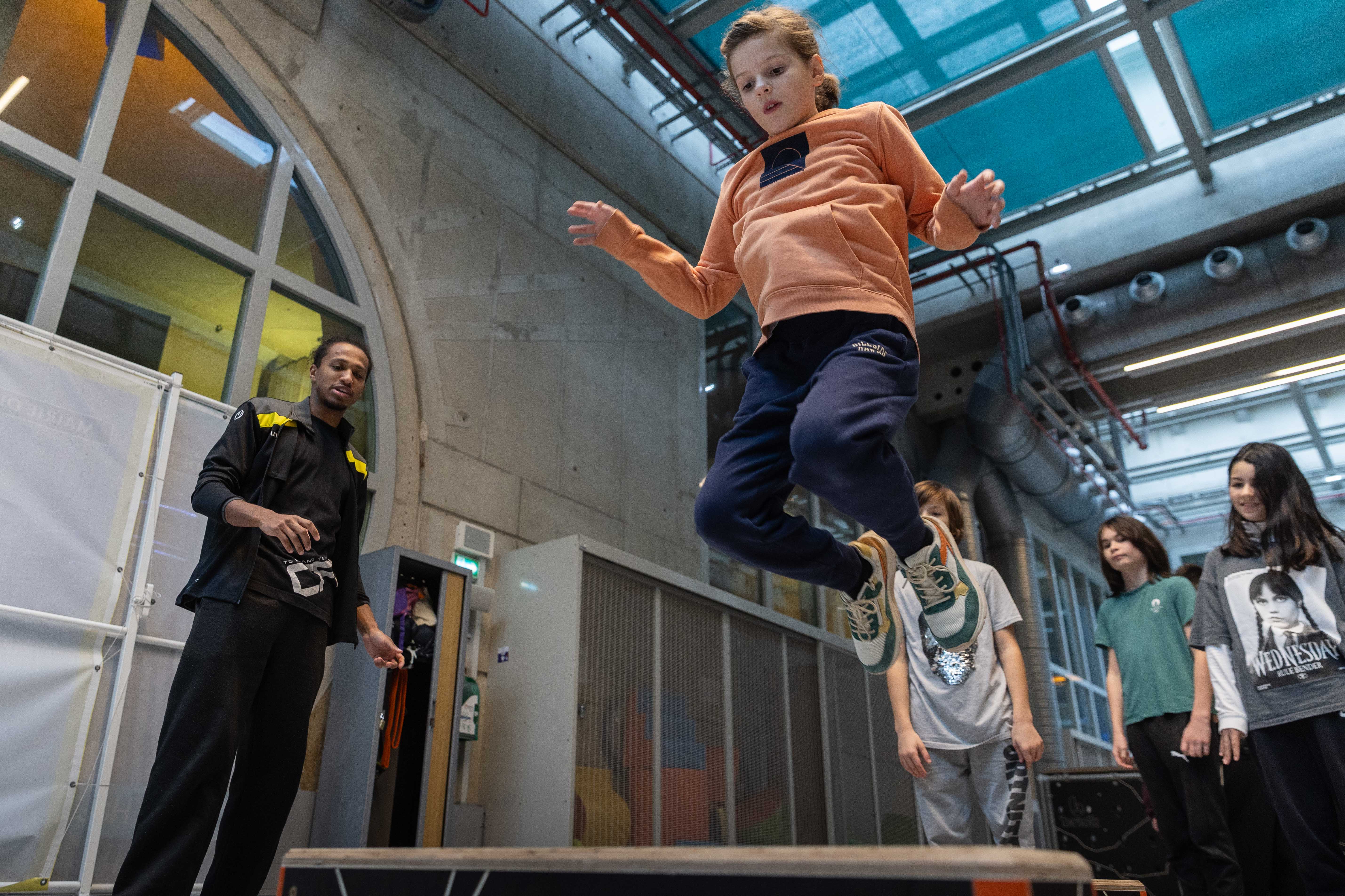 et garçons de 7 à 11 ans, s’initient au Parkour, encadrés par des éducateurs