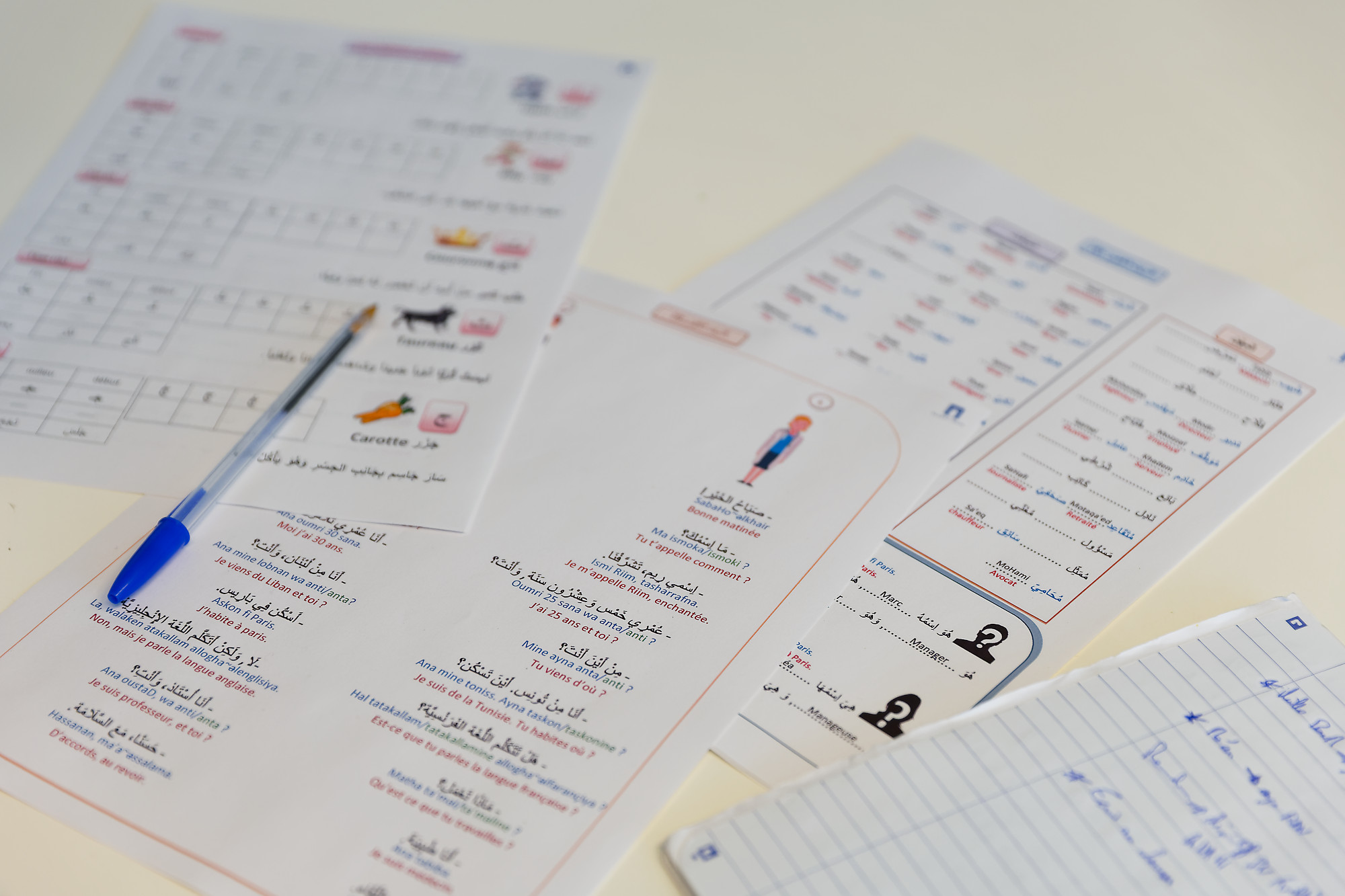 méthode : on commence tout de suite à parler en arabe, en phonétique, avec des phrases simples