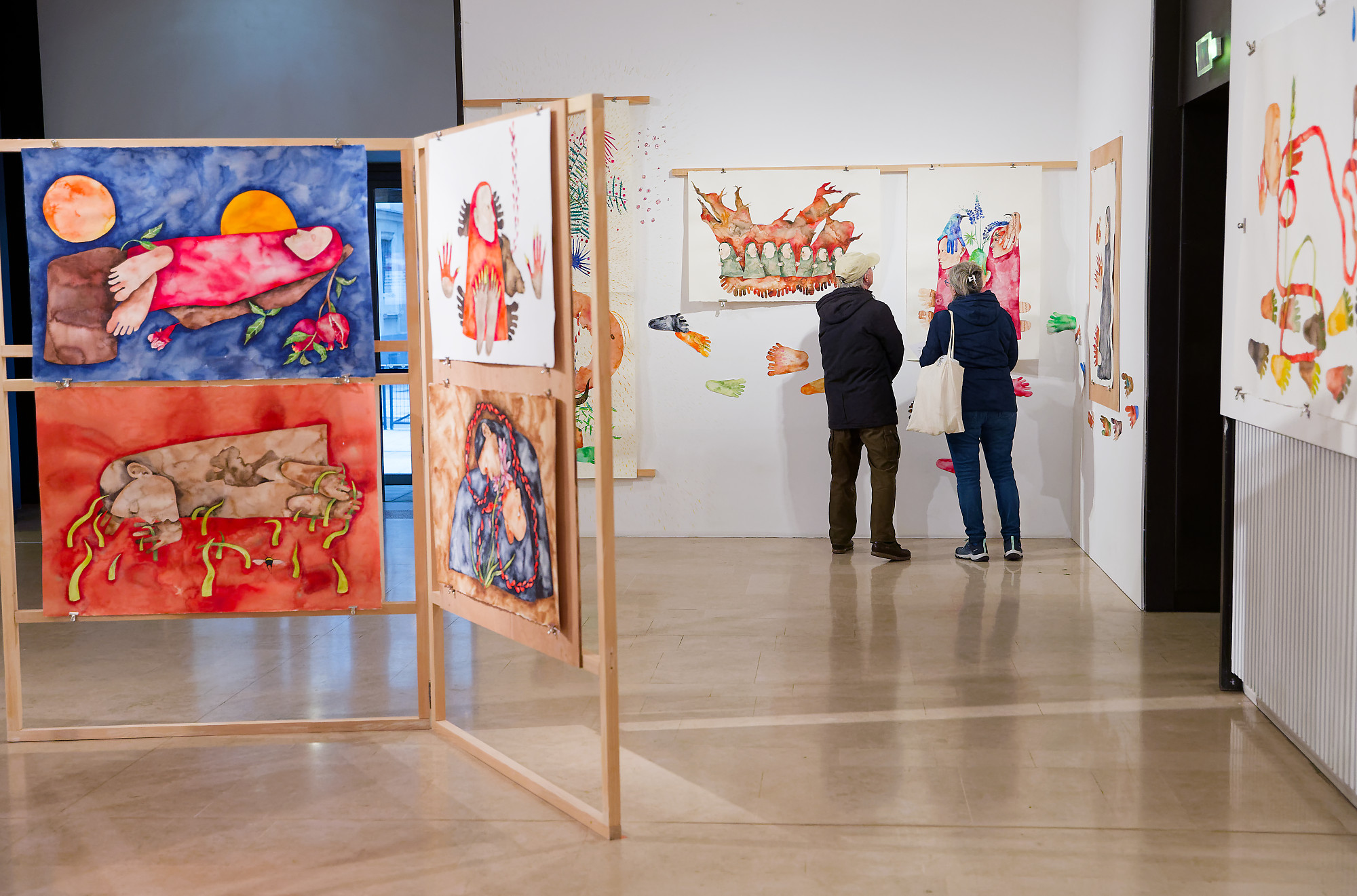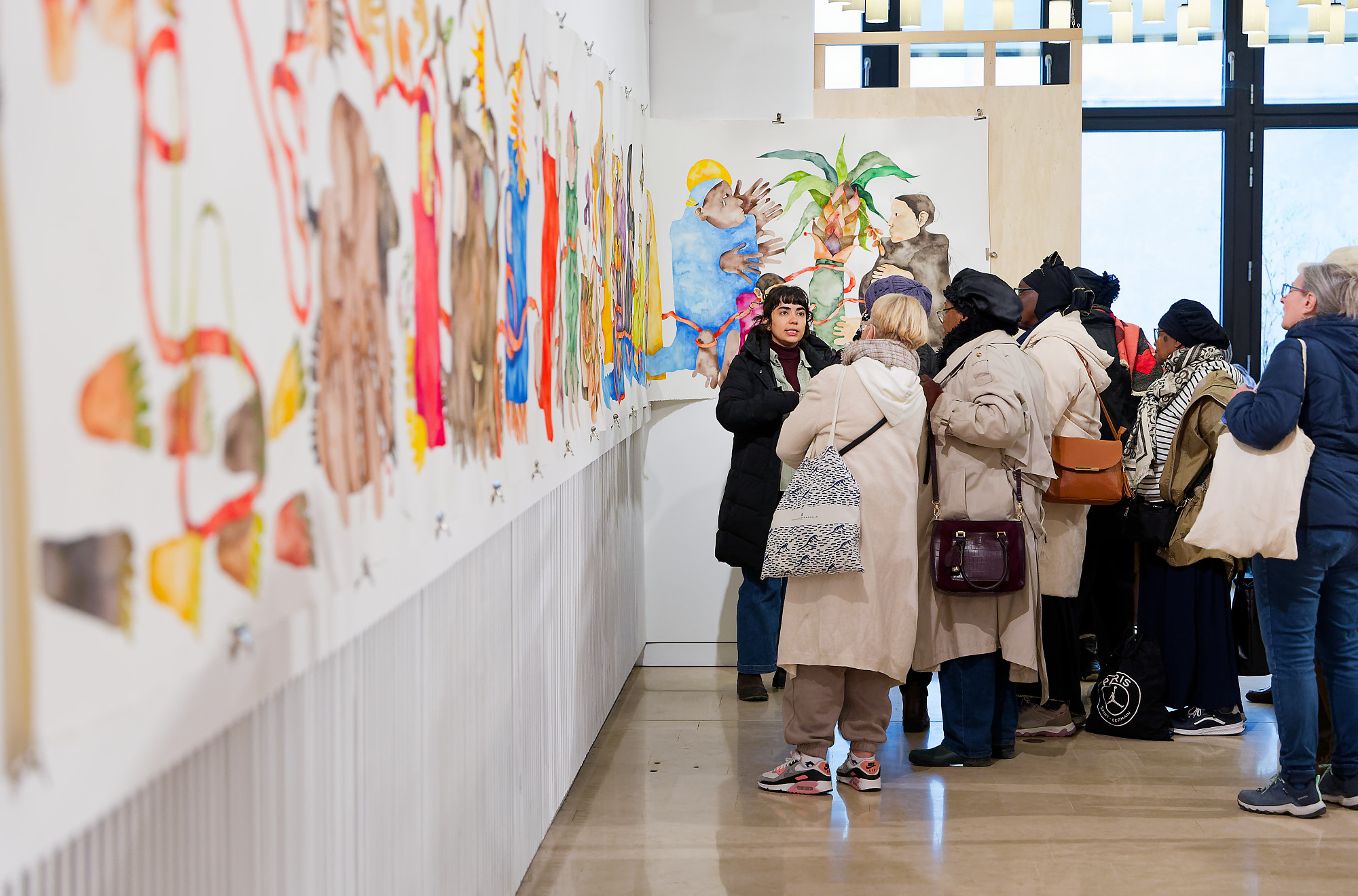 Visite de l’expo « Those Who Walk the Land », de Sabreen Haj Ahmad, avec les bénéficiaires de l’association Ayyem Zamen.