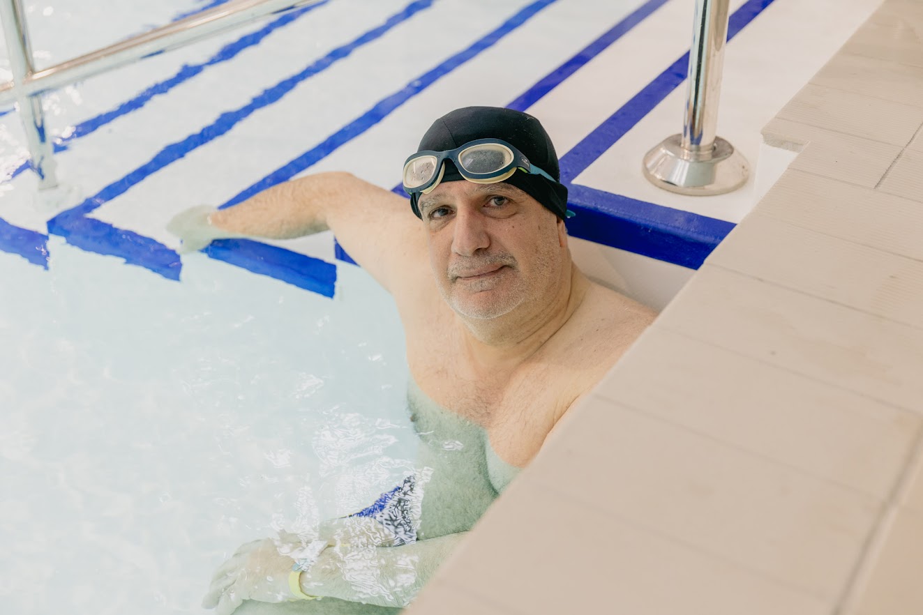 La piscine est superbe. J’habite dans le quartier, rue Louis Blanc, et je vais venir tous les jours. J’ai pris l’habitude de nager depuis que j’ai eu un grave accident de voiture il y a plusieurs années. Je fais huit longueurs aller-retour dans le bassin principal, puis je me repose dans le petit bassin.