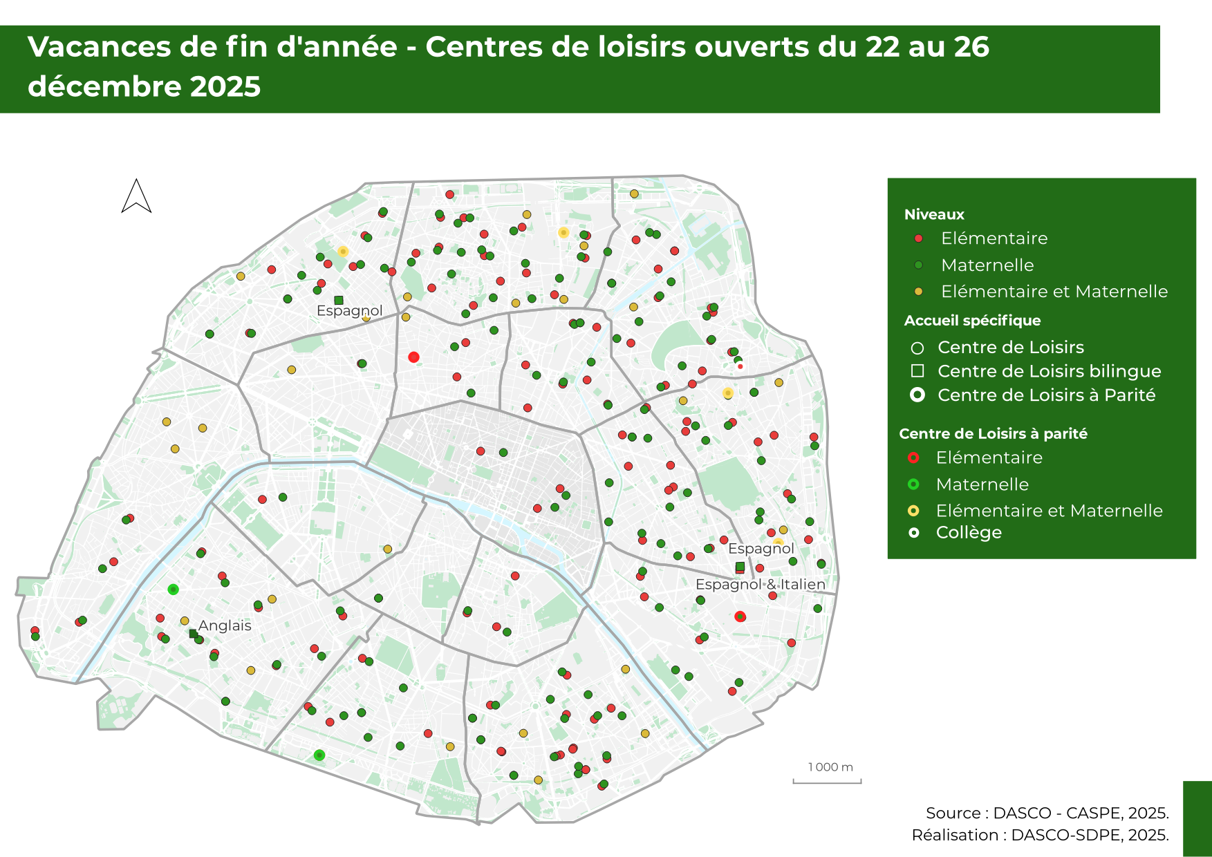 Les centres de loisirs sont implantés dans les écoles maternelles et élémentaires publiques parisiennes. Ils accueillent vos enfants les mercredis et pendant les vacances scolaires. Les inscriptions pour les vacances de fin d'année sont ouvertes du Lundi 24 novembre au lundi 8 décembre 2025.