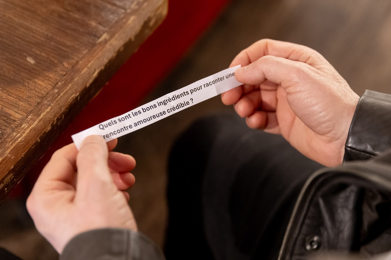 La séance du jour a débuté par un petit quiz autour de la rencontre amoureuse, le thème du jour, avant de se lancer dans l’écriture de la scène de film.