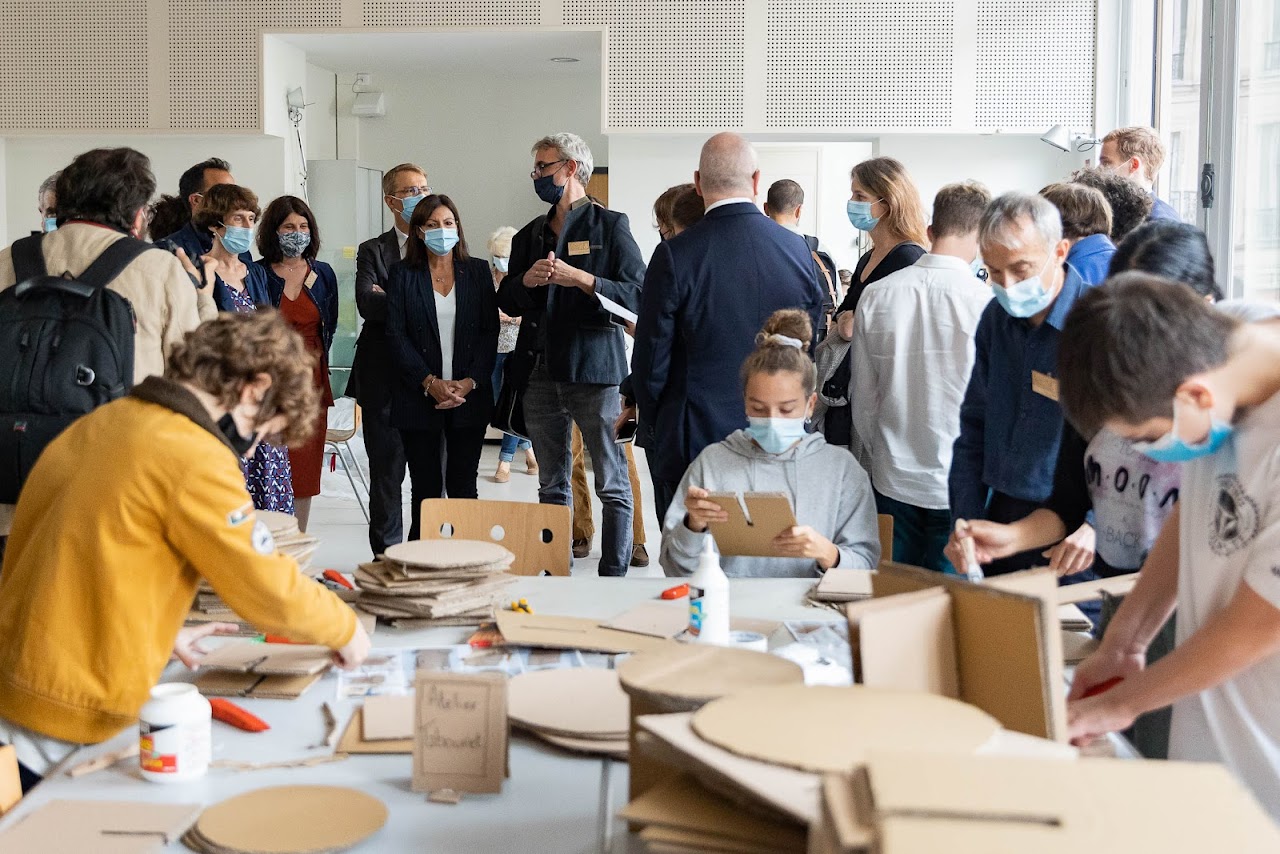L’Académie du Climat, installée dans l'ancienne mairie du 4e arrondissement, est un lieu collectif pensé pour et par les jeunes de 9 à 25 ans. L'objectif est de leur donner les moyens de se former sur les défis climatiques afin d'agir efficacement pour construire le monde de demain.