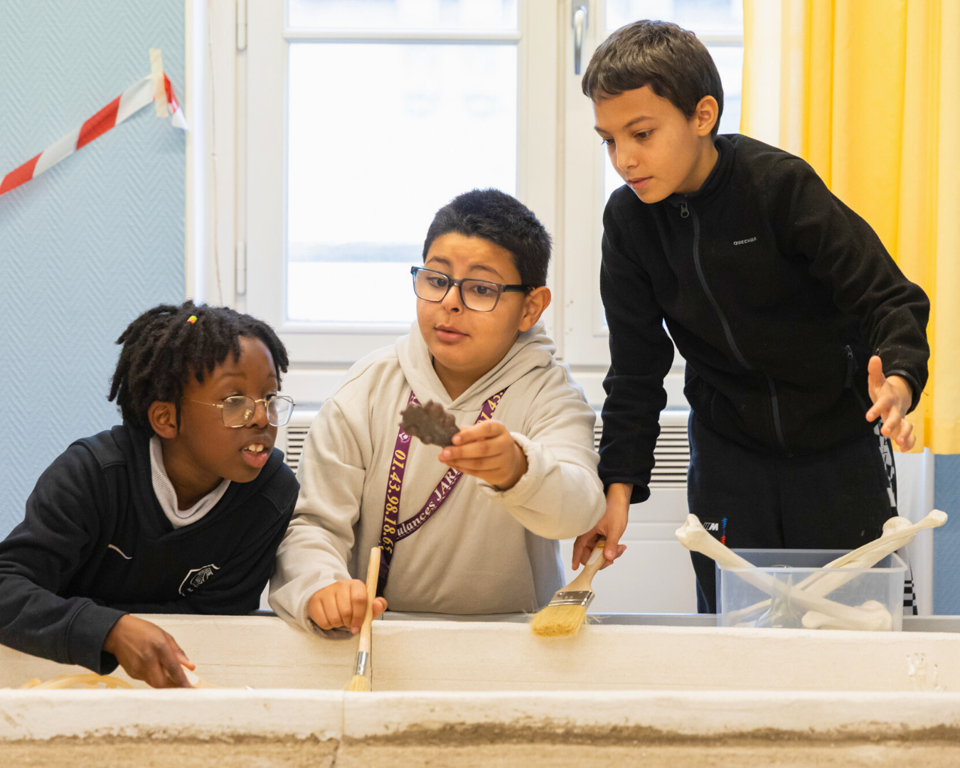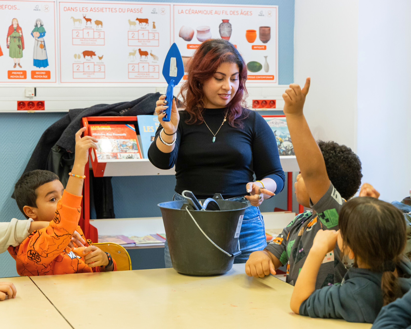 Durant l'année scolaire 2024-2025, près de 1 200 élèves du CE1 au CM2 ont participé aux ateliers de médiation "hors les murs" du Pôle archéologique de Paris. Proposées par des médiatrices spécialisées en archéologie, ces séances visent à présenter le travail des archéologues et les vestiges rencontrés. Les enfants sont également invités à mener une enquête pour identifier un bâtiment mis au jour lors d'une fouille, au moyen de fac-similés d'objets présentés en classe.