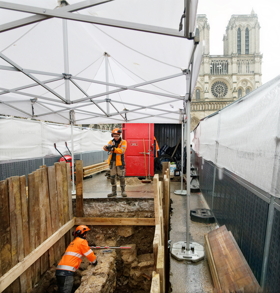 Début 2025, le Pôle archéologique s'est vu confier la réalisation d'un diagnostic archéologique sur le parvis de Notre-Dame, en amont de sa végétalisation.
