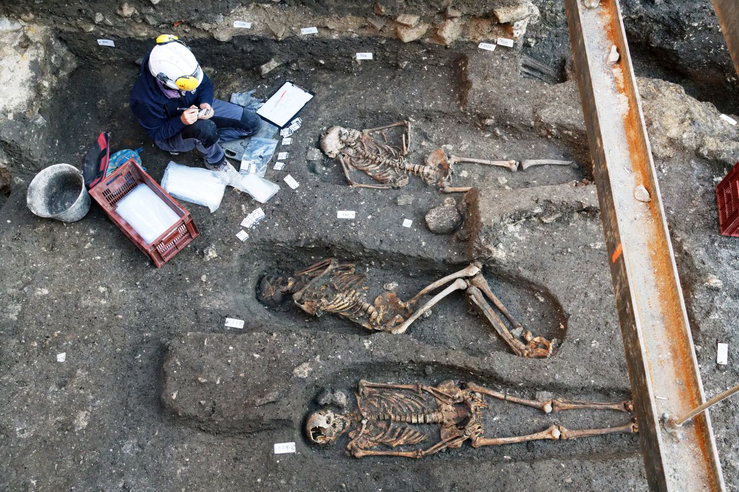 La fouille réalisée dans la cour du Mai du Palais de Justice de l'île de la Cité en 2025, a révélé une nécropole médiévale jusqu'alors inconnue.