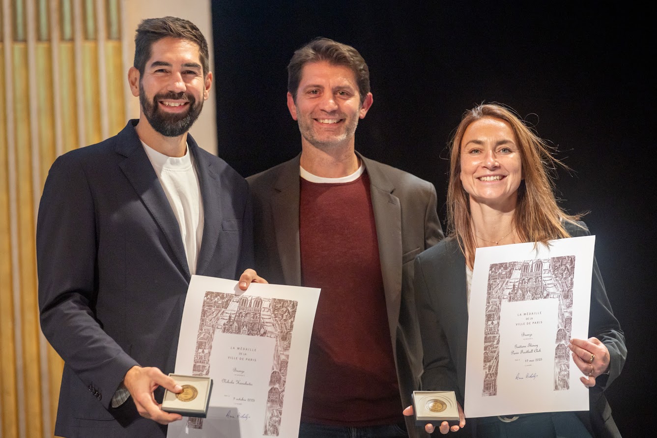 La footballeuse Gaëtane Thiney et le handballeur Nikola Karabatic médaillés par la Ville de Paris
