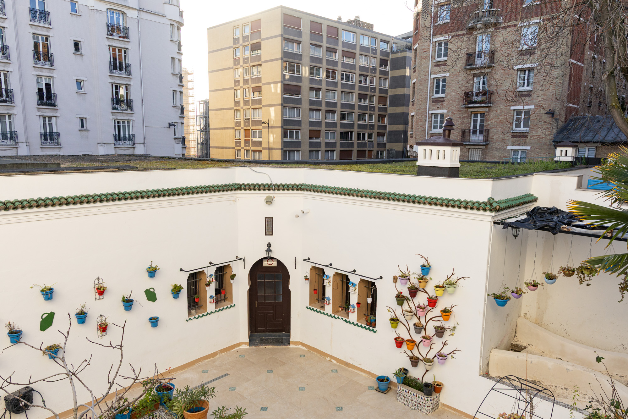 C’est du jardin que l’on admire le mieux le minaret de la Grande Mosquée (5e).