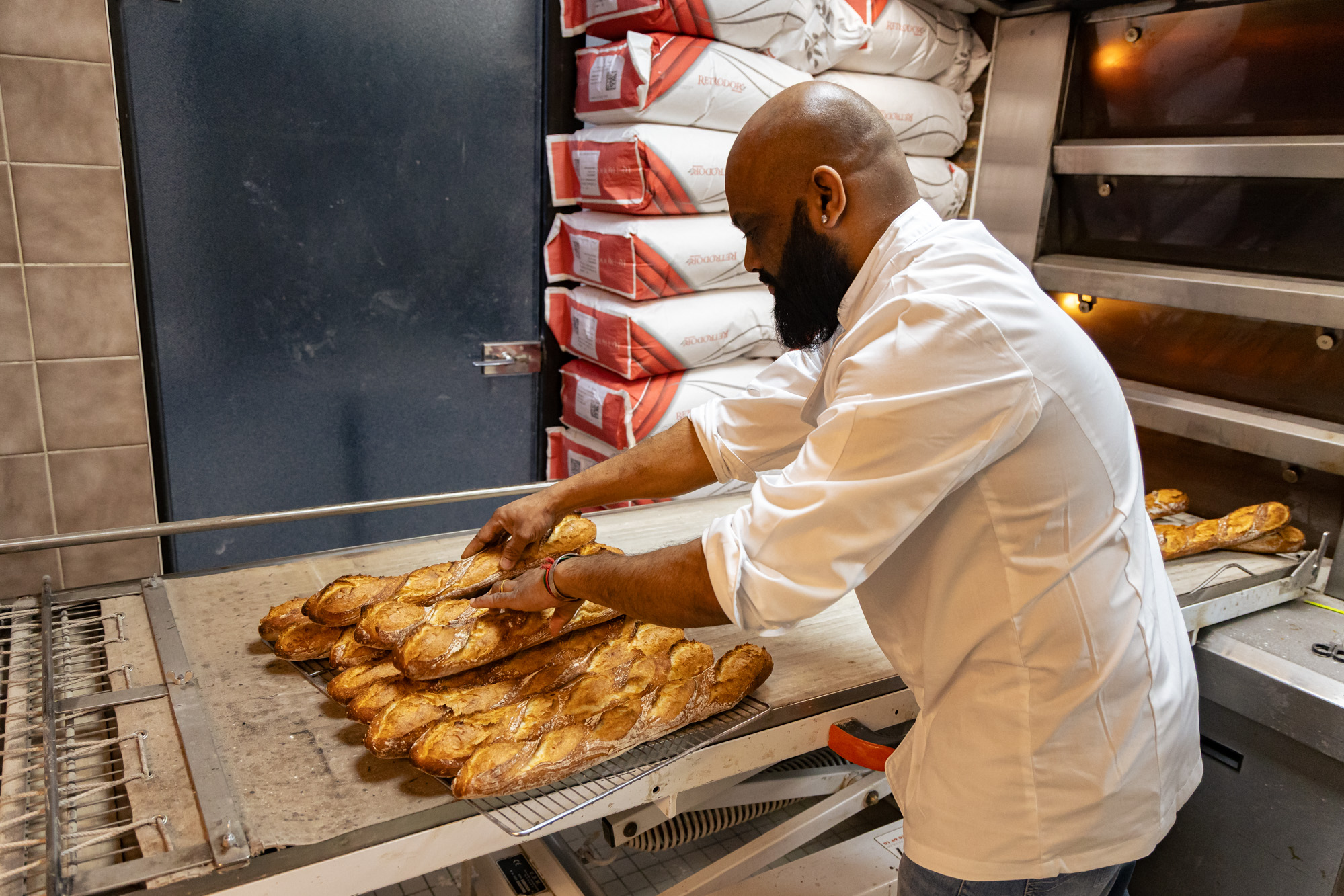 Sithamparappillai Jegatheepan sort les baguettes du four.