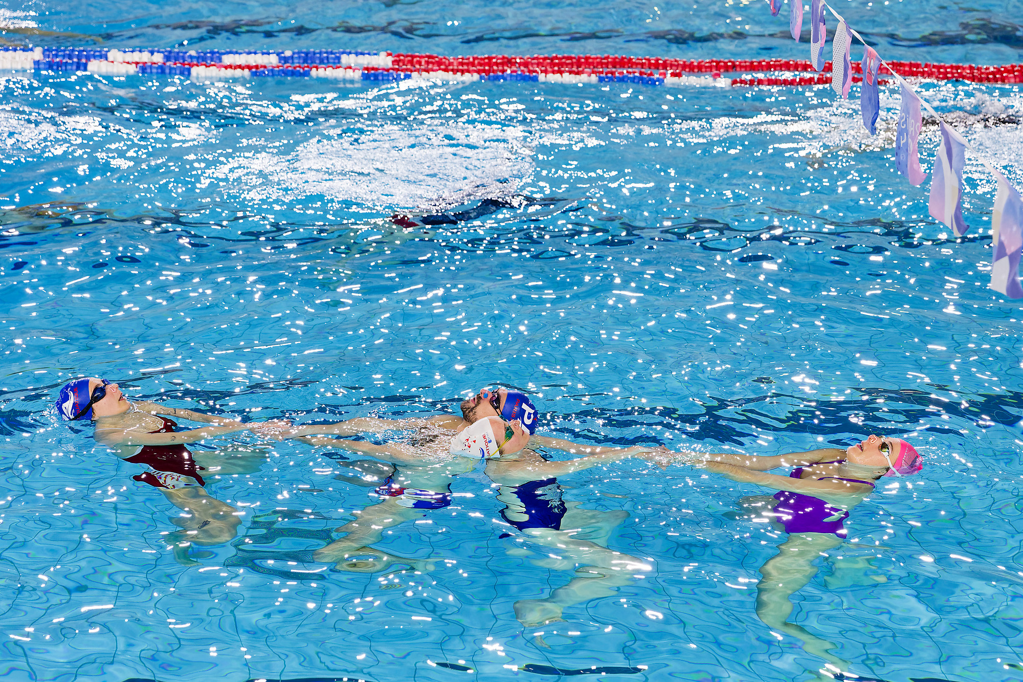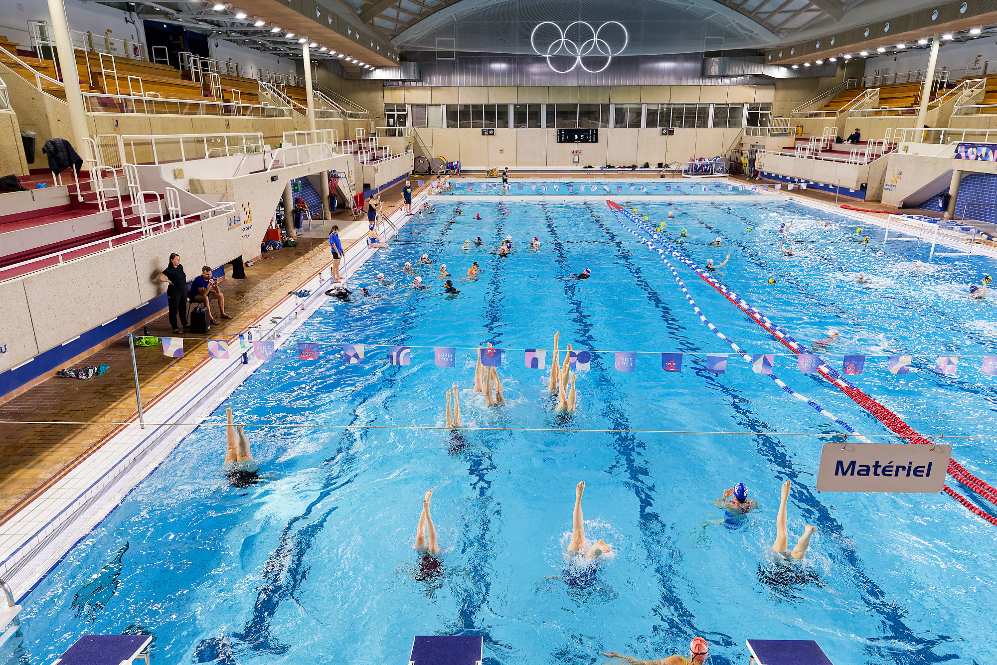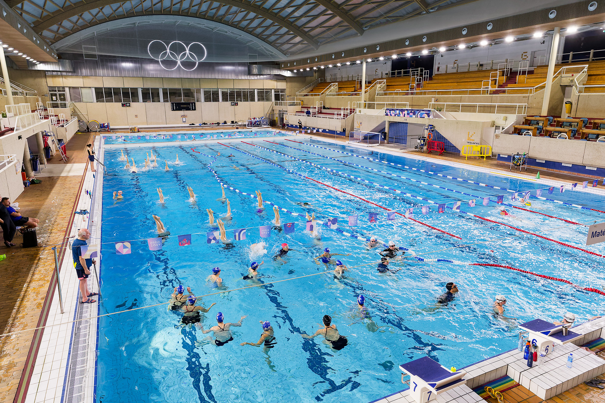 Plusieurs équipes de Paris Aquatique se retrouvent pour un entraînement de natation artistique à la piscine Georges-Vallerey (20e).