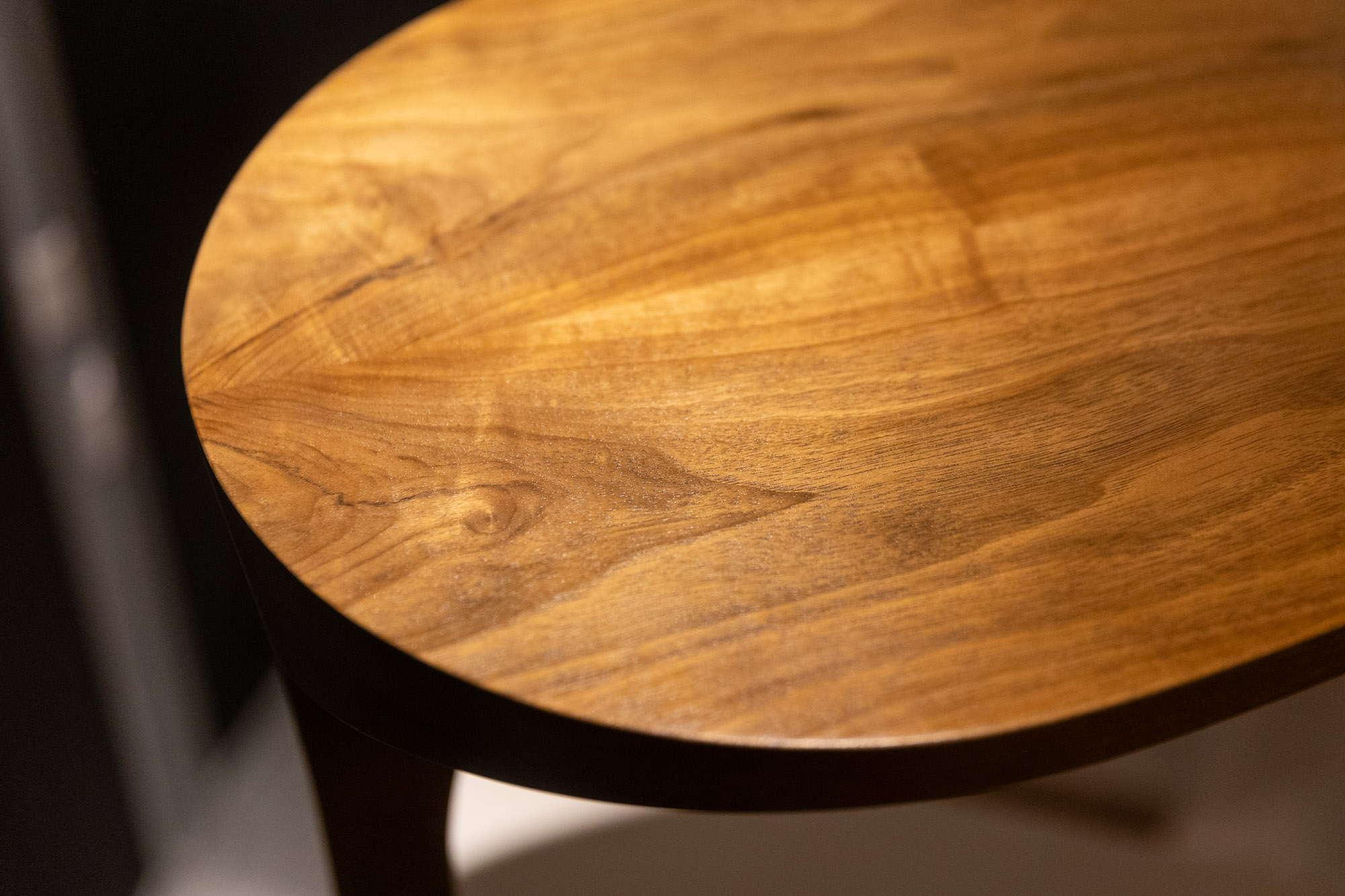 Je fabrique exclusivement sur commande, mais mon bout de canapé lauréat a déjà séduit plusieurs personnes. Je le propose en noyer, l’essence retenue pour le label, mais aussi en merisier, un bois français plus clair que j’affectionne particulièrement. Les pièces sont toutes réalisées dans mon atelier parisien, à partir de bois local que je sélectionne moi-même, toujours dans l’idée de prolonger une lignée familiale où le bois a traversé les générations.