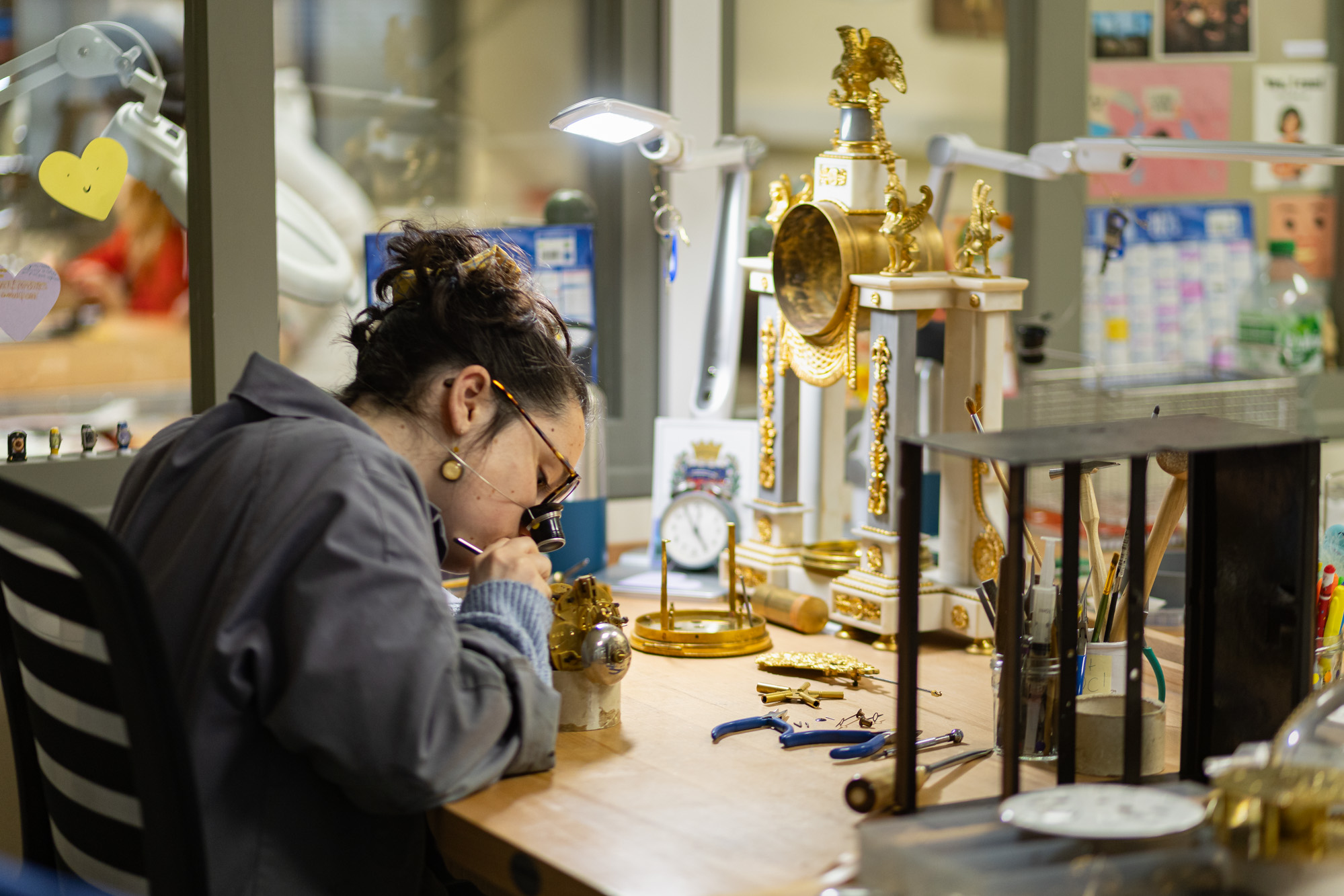 Métier insolite : portrait d'une horlogère de la Ville en train de travailler avec minutie dans un atelier du 10e.