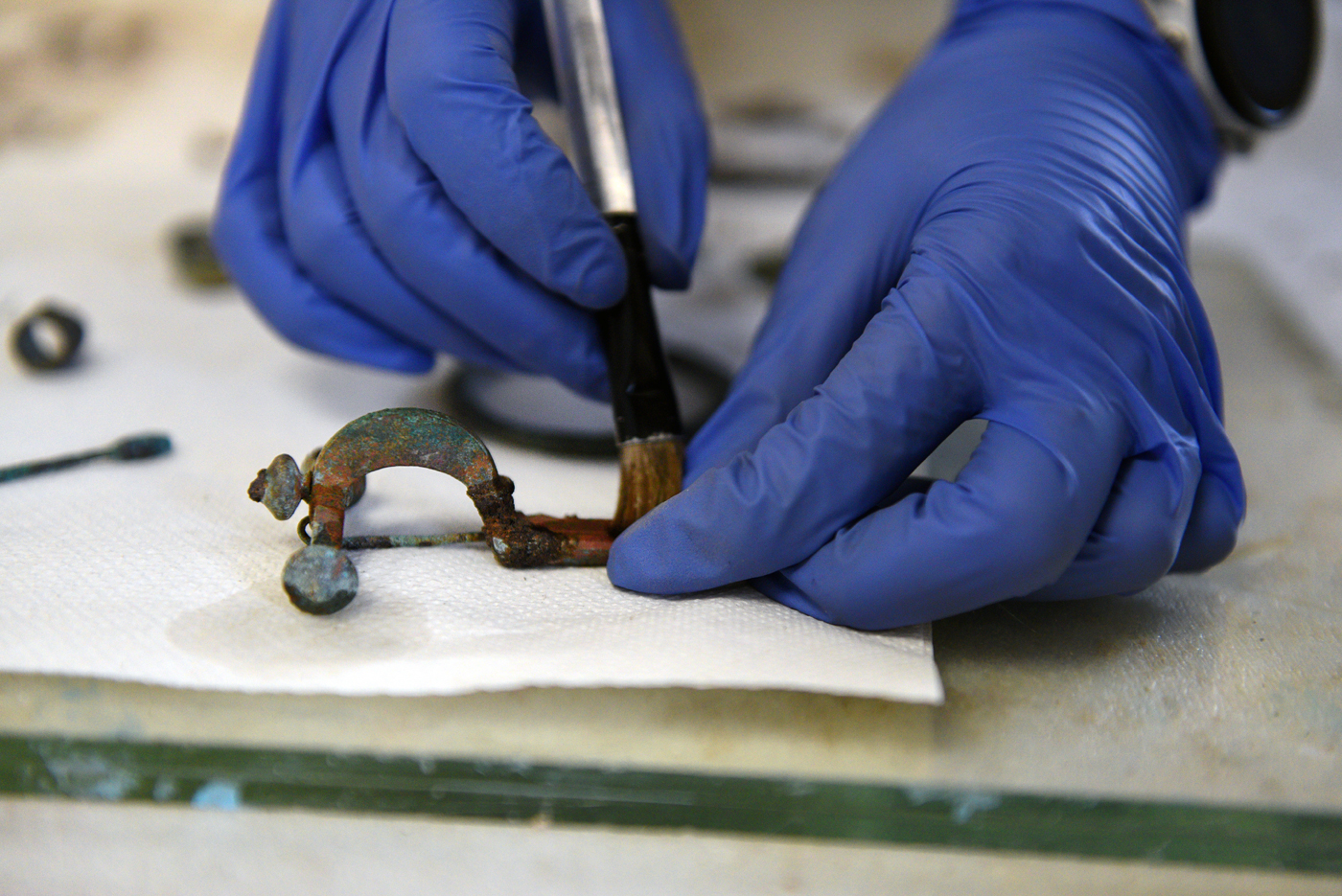C’est au laboratoire que les objets trouvés par les archéologues sont révélés.