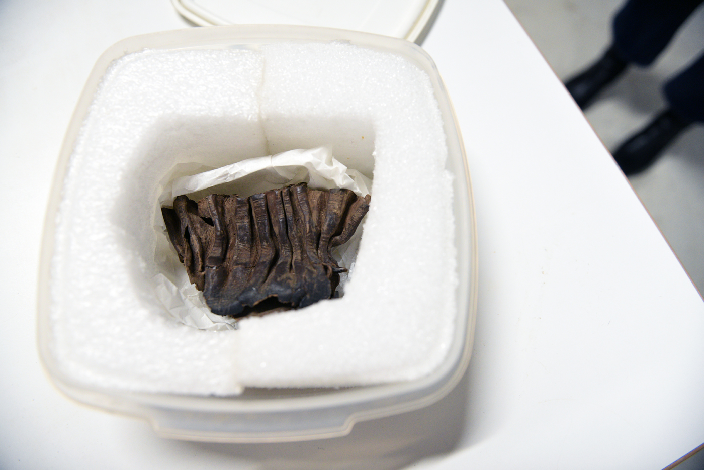 Cette bourse en cuir datant du XIIe siècle a été trouvée boulevard Saint-Michel (5e). Seul un lyophilisateur permet sa conservation hors du milieu humide.