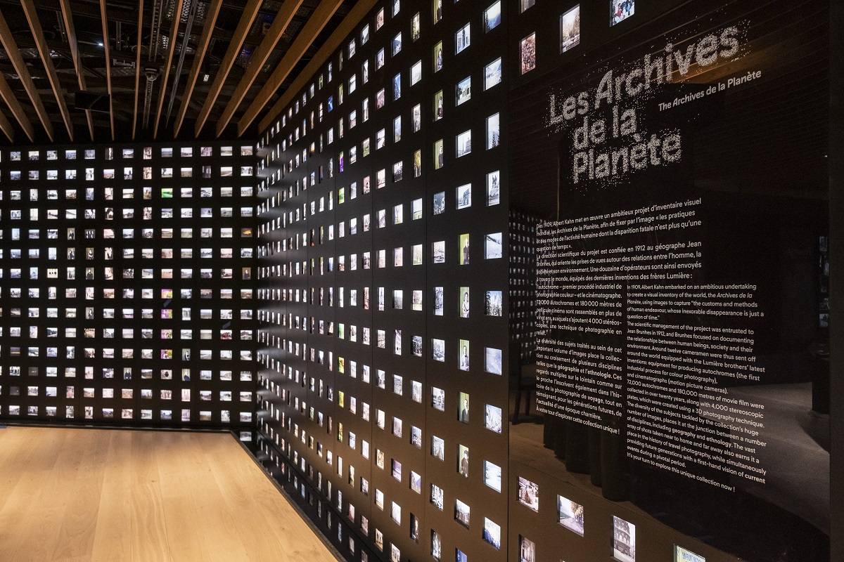 Vu la profusion de la masse documentaire ainsi accumulée, il n'est bien sûr pas possible de mettre en valeur la totalité des collections du musée. Le choix a été fait, au rez-de-chaussée, d'en présenter des extraits à travers un mur d'autochromes choisis de façon aléatoire, qui donne un aperçu saisissant de sa variété. L'aménagement intérieur du bâtiment dessiné par l'architecte japonais Kengo Kuma, ses volumes, ses plafonds striés de longues lattes de bois, ainsi que la scénographie faite de dispositifs interactifs sophistiqués, donnent à la collection tout l'éclat qu'elle mérite, tandis que quelques détails domestiques rappellent aux visiteurs que le parcours s’effectue dans la propriété du mécène.
