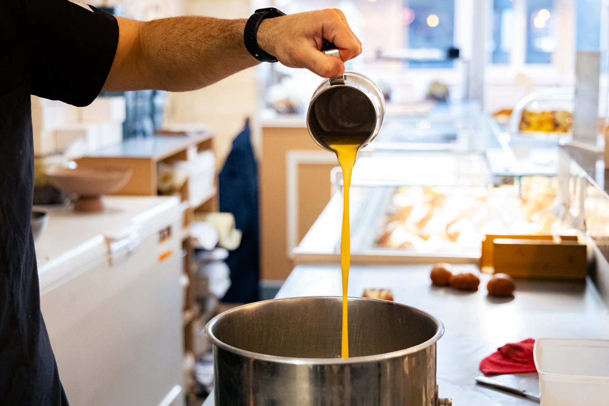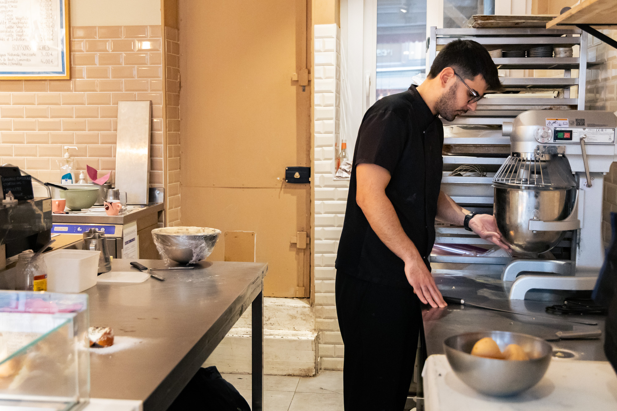 En 2023, le chef Francesco Vescio nous rejoint > Il a vite compris mon envie de faire connaître les douceurs italiennes de façon authentique. Depuis, le chef Vincenzo a aussi été recruté. Il est de tradition napolitaine, ce qui enrichit notre travail.
