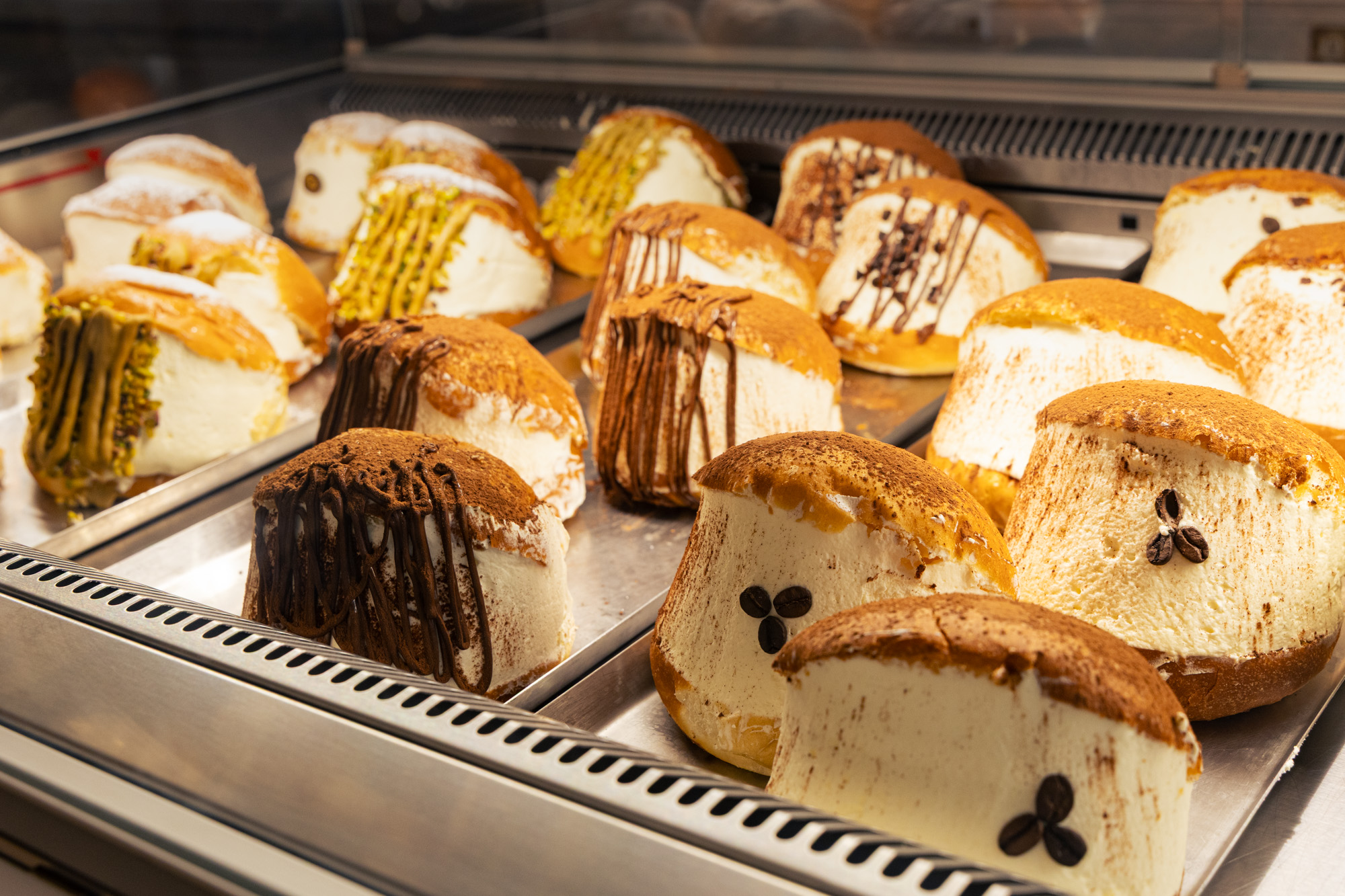 En boutique, les maritozzi sont déclinés en grand format et proposés nature, à la pistache, au chocolat ou au tiramisu.
