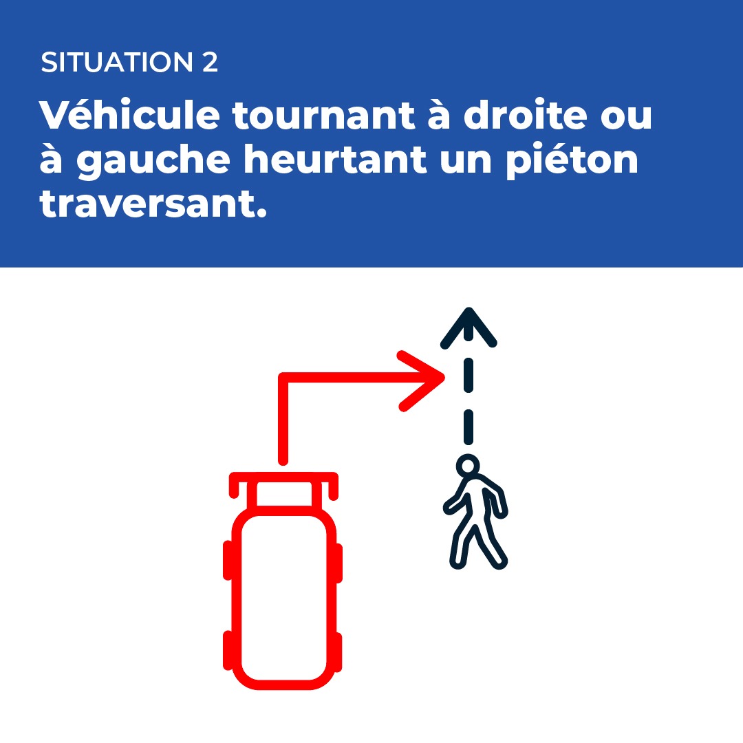 Situation 2 : véhicule tournant à droite ou à gauche heurtant un piéton traversant