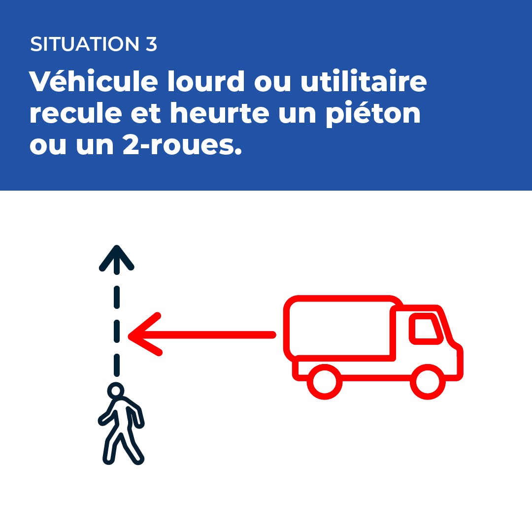 Situation 3 : véhicule lourd ou utilitaire recule et heurte un piéton ou un 2-roues.