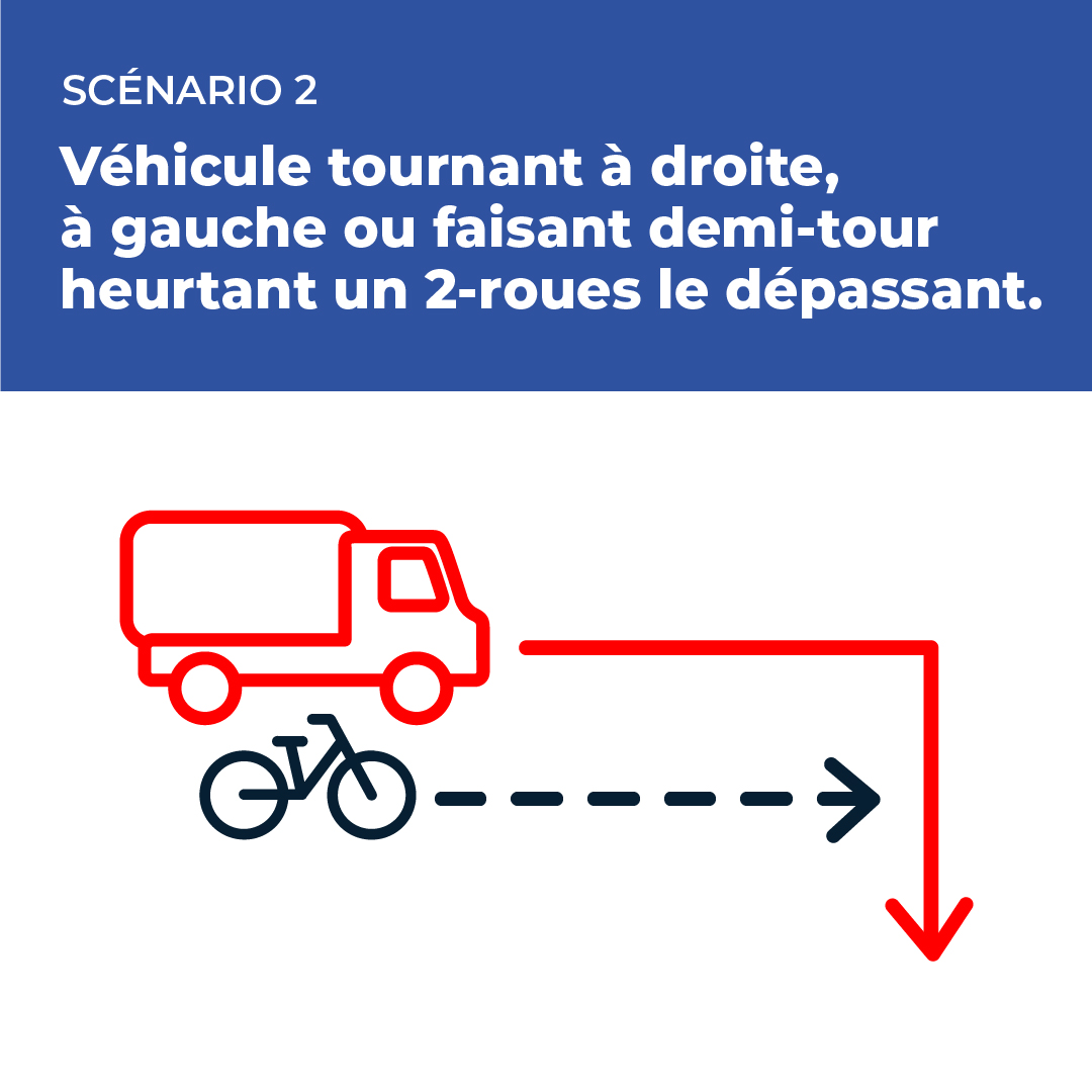 Situation 1 : véhicule tournant à droite, à gauche ou faisant demi-tour heurtant un 2-roues le dépassant