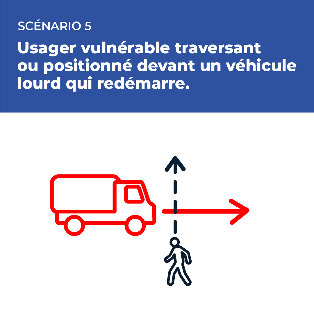Situation 5 : usager vulnérable traversant ou positionné devant un véhicule lourd qui redémarre