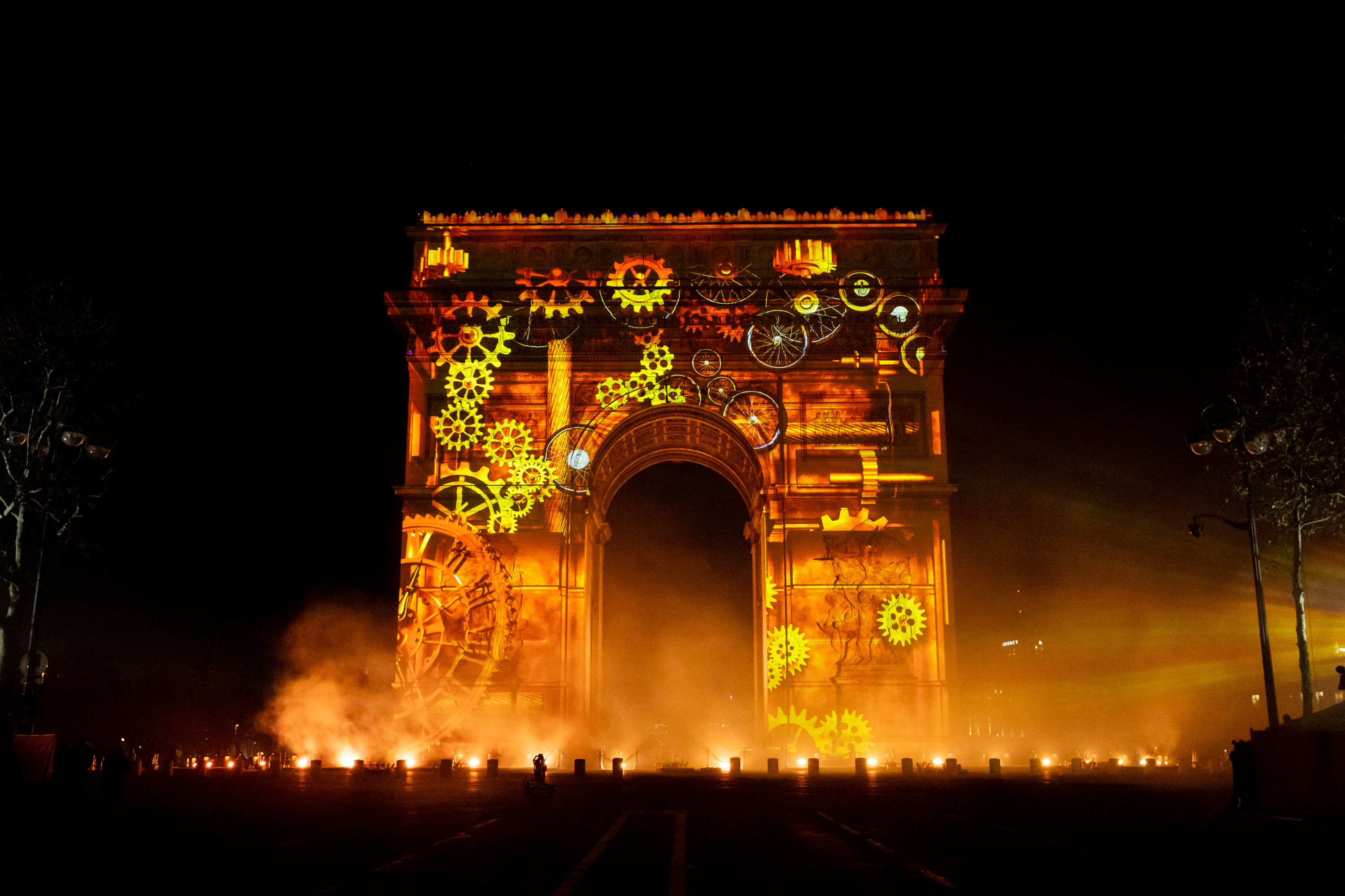 L'Arc de Triomphe était le tableau de ce spectacle qui a fait patienter le public jusqu'à minuit.