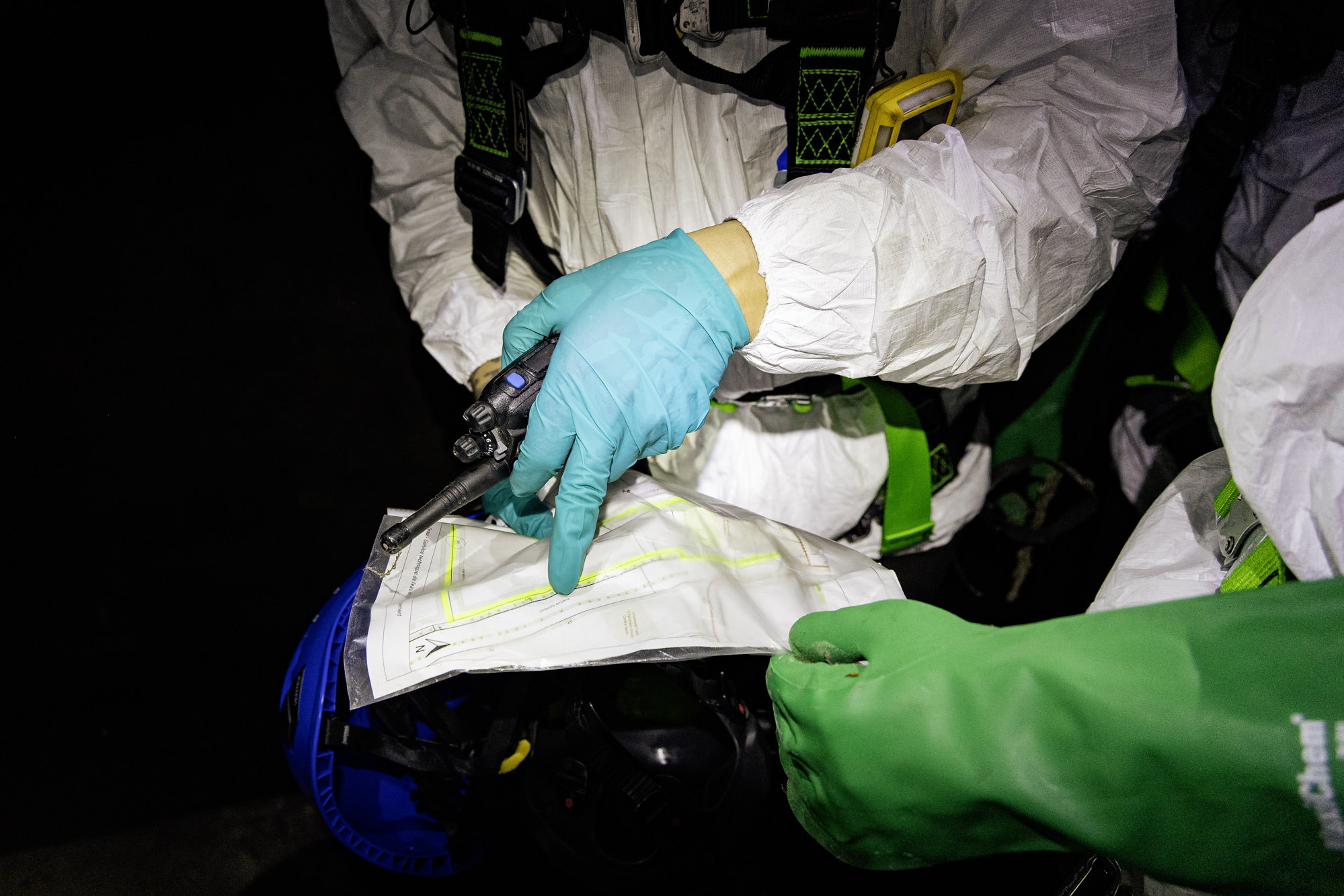 des équipements de protection individuelle (EPI). Puis la descente dans le labyrinthe.