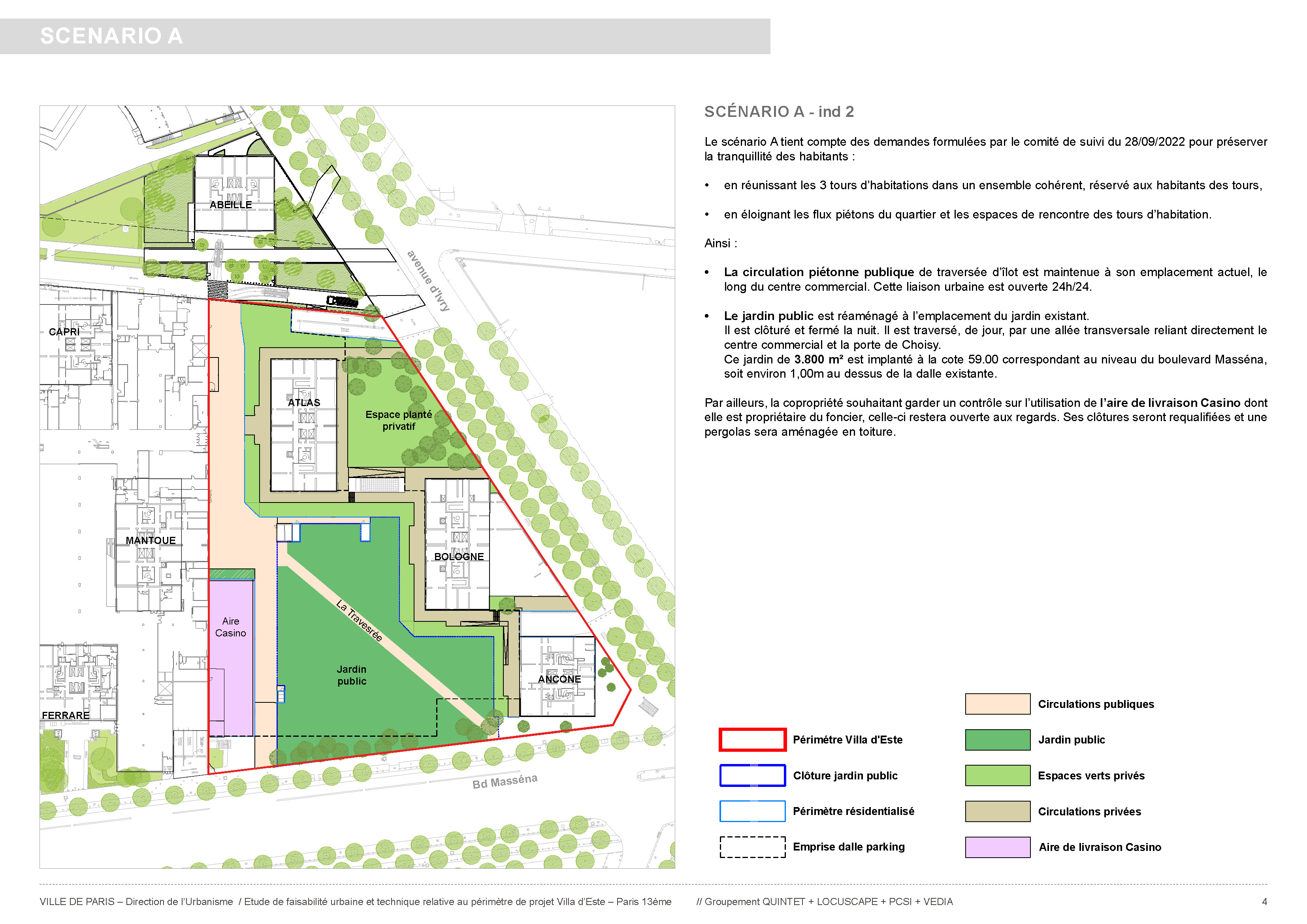 2 scénarii ont été étudiés pour être proposés aux résidents de la copropriété et c'est celui du grand jardin qui a été retenu par les habitants :
